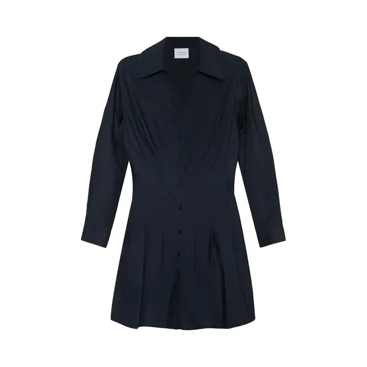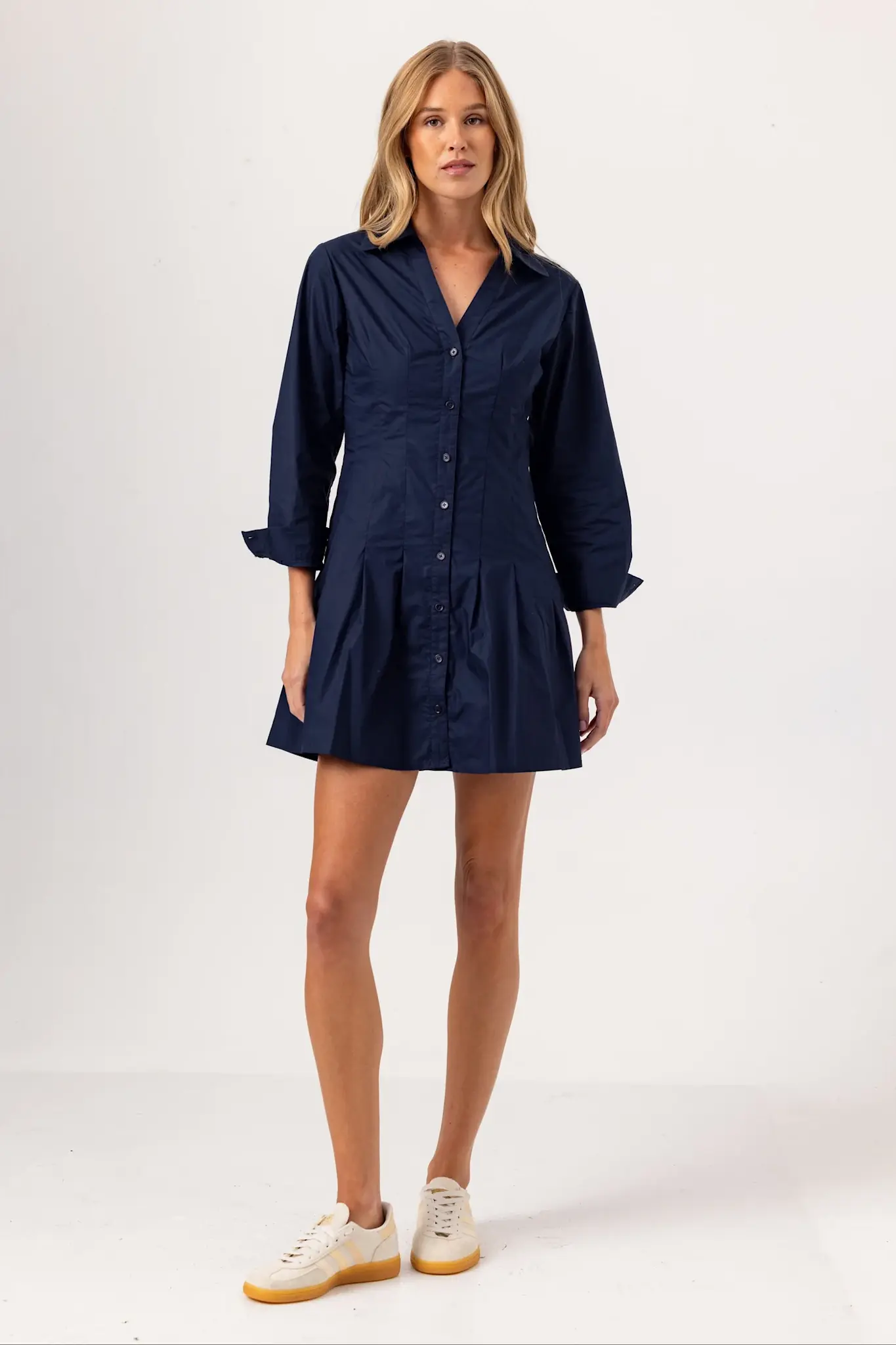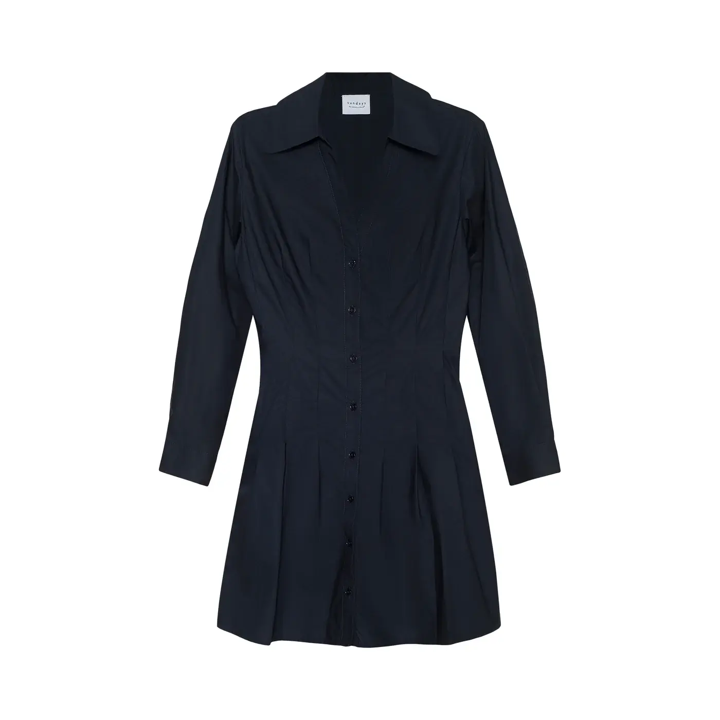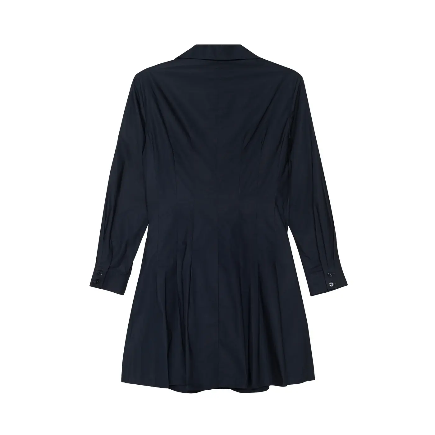 • 100% cotton poplin button up, corset-style paneling and pleated skirt dress