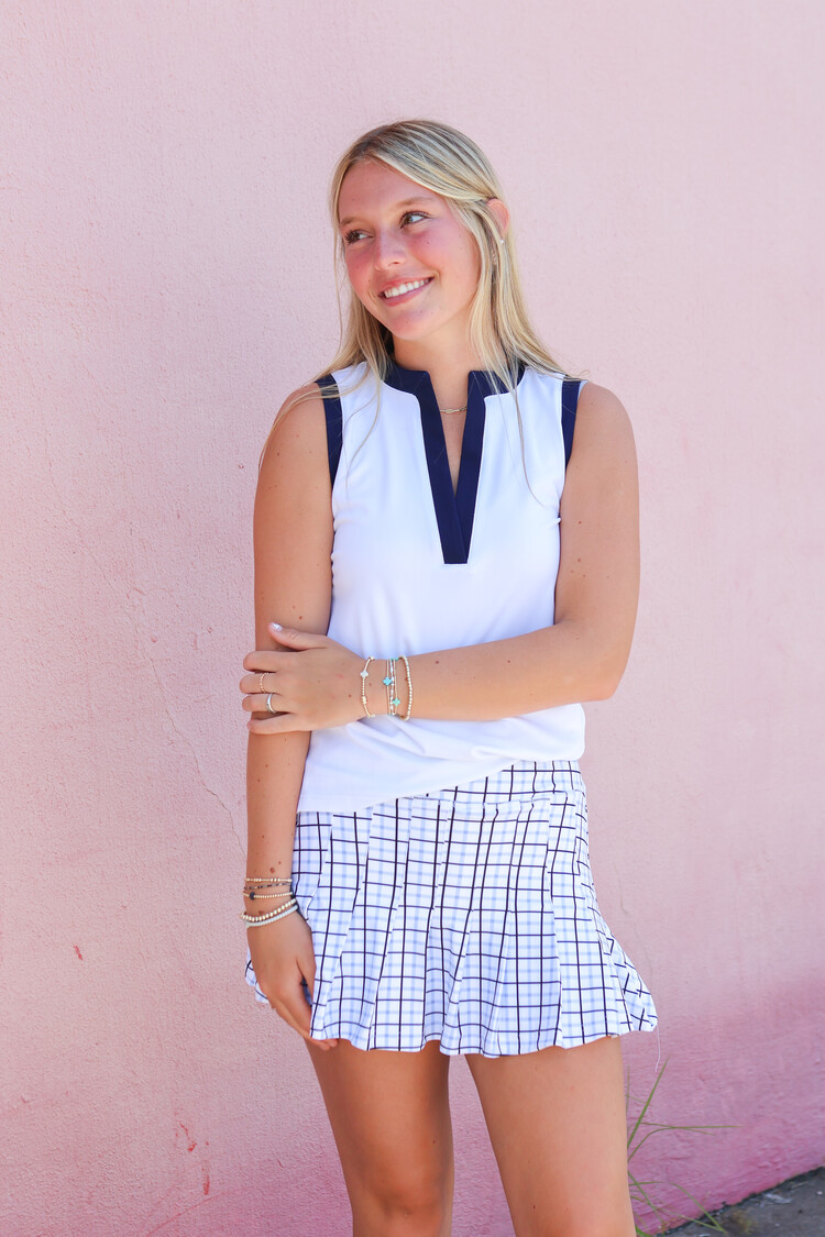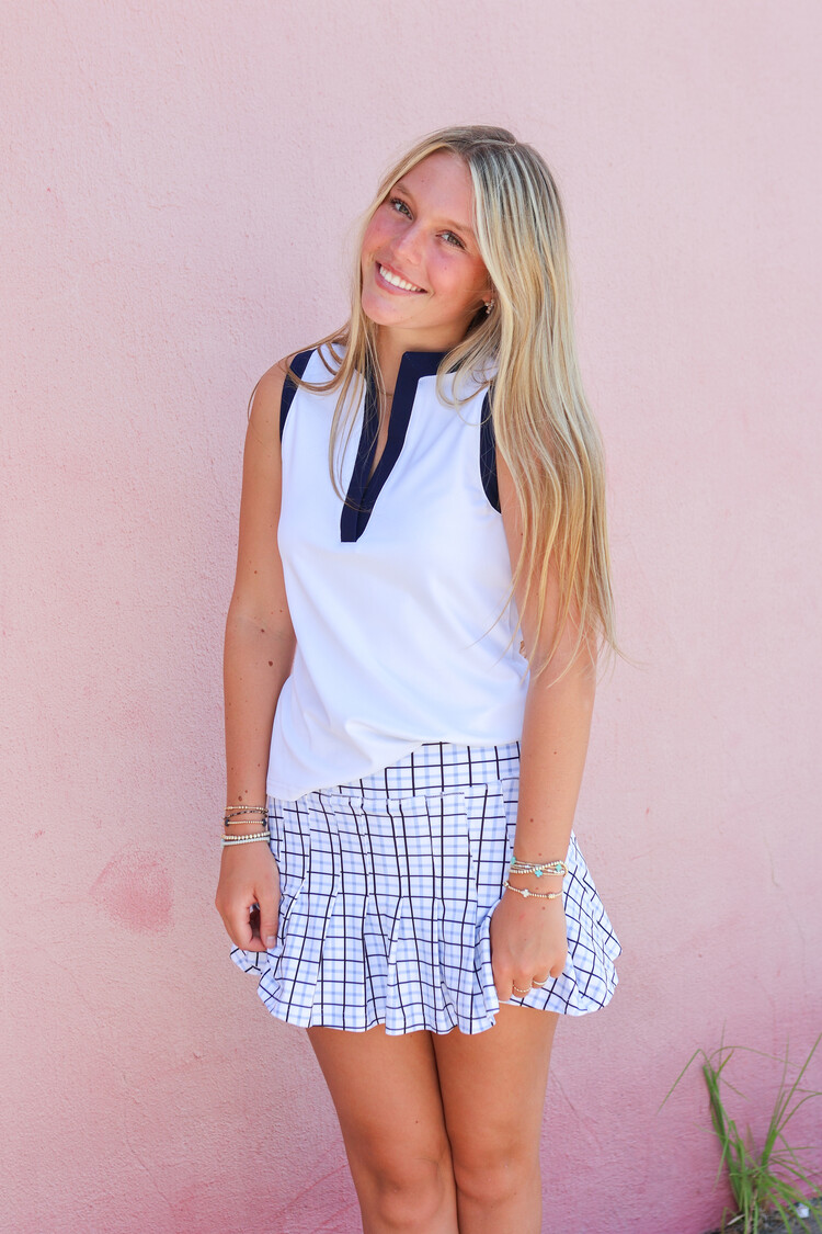 • The Grey pleated skort is a new take on our bestselling Gwen skort. Slightly lower waisted, improved flattering fit and undershort with...you guessed it, POCKETS.