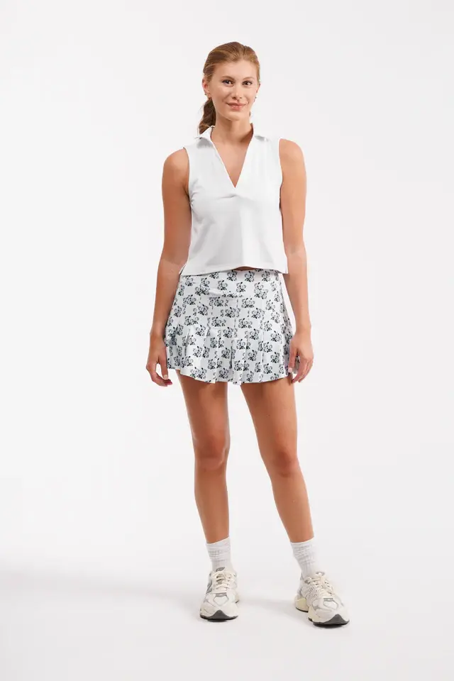 The Grey pleated skort is a new take on our bestselling Gwen skort. Slightly lower waisted, improved flattering fit and undershort with...you guessed it, POCKETS.
