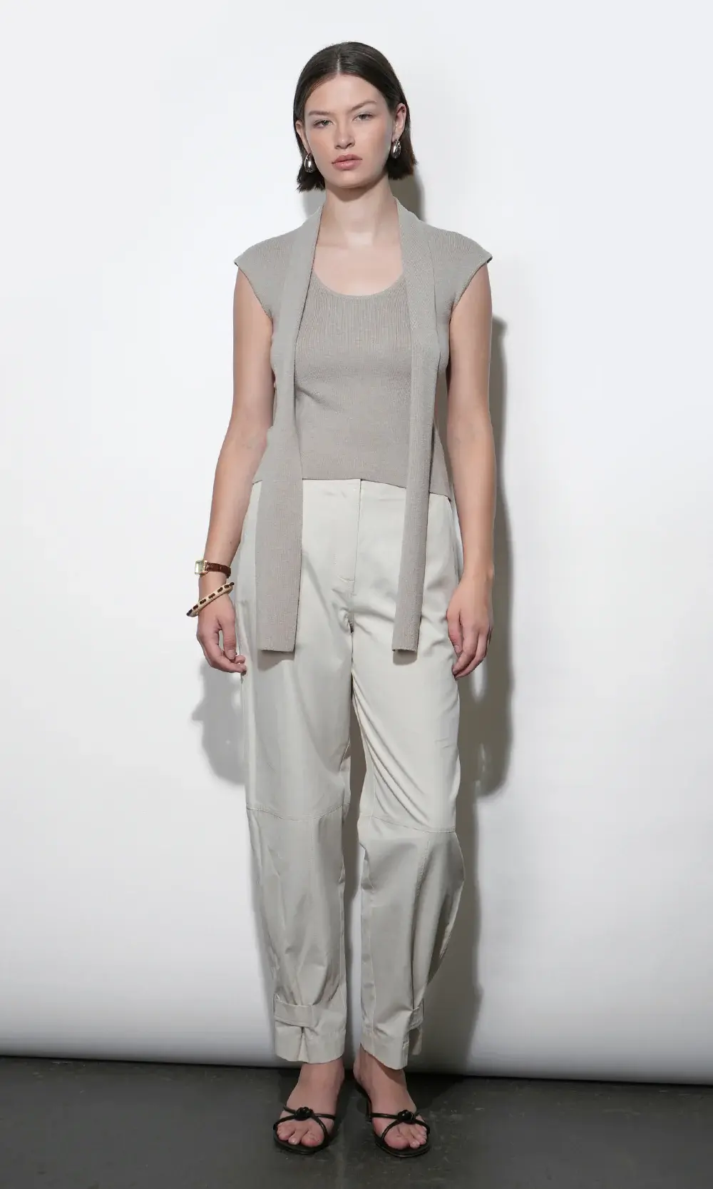 • This design element eliminates the need for separate accessories and allows the wearer to tie, drape, or wrap the scarf for various sophisticated looks, all while maintaining the comfort of a knit top.