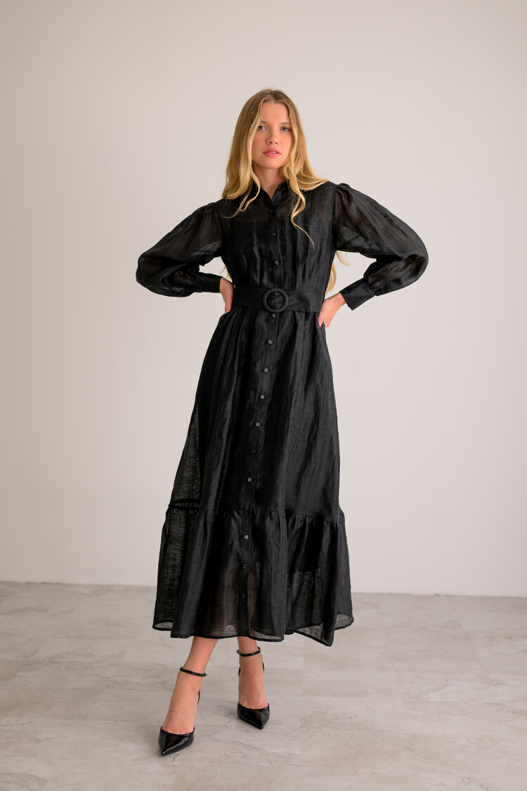 Constructed with polished cotton poplin, the Lavender Brown River Dress in Black exudes elegance and sophistication. Its collared tank design and button front closure add an extra level of refinement to its already chic silhouette. Cotton