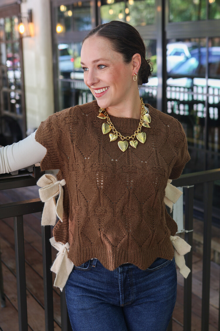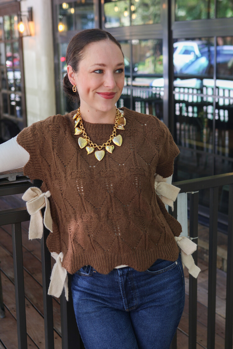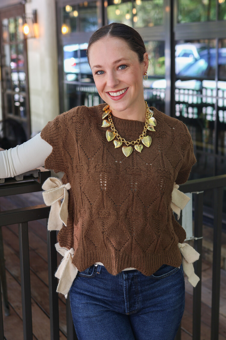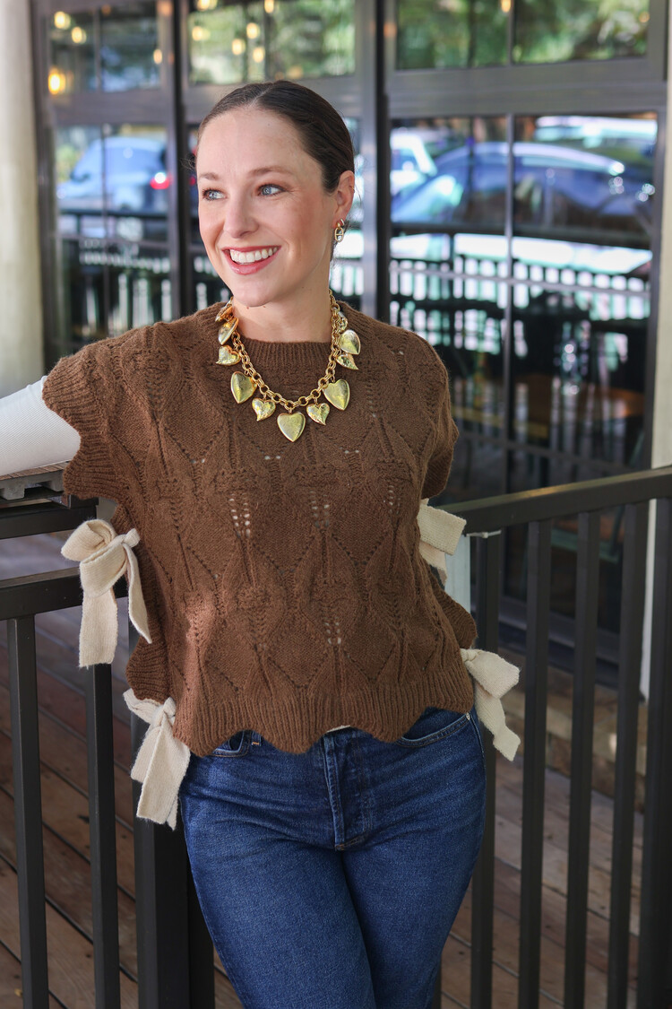 This sweater is perfect for fall days, featuring delicate stitching details & playful scallop edges for a breezy, feminine look. The flowy silhouette ensures comfort and ease, making it an ideal choice for everyday or season outings.