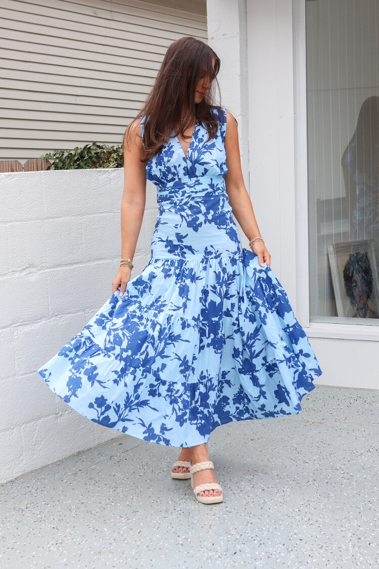 • Designed with a slim fit through the hip cut, floral print and sleeveless. Zipper on the side in a light soft cotton fabric.