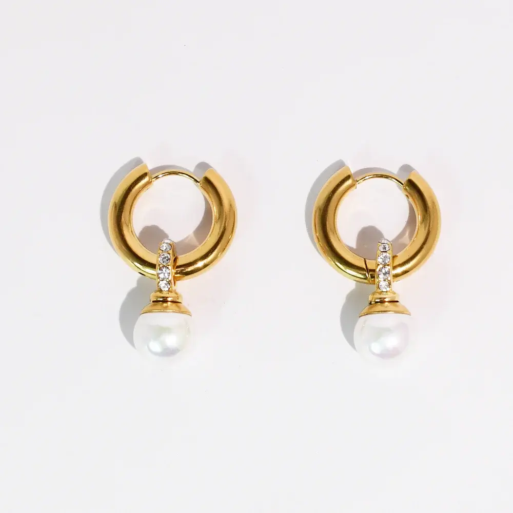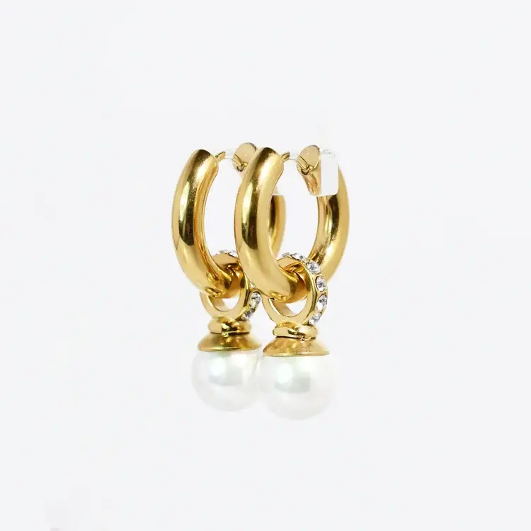 • These elegant gold huge earrings feature a delicate pearl charm accented with a row of shimmering crystals for just the right touch of sparkle.