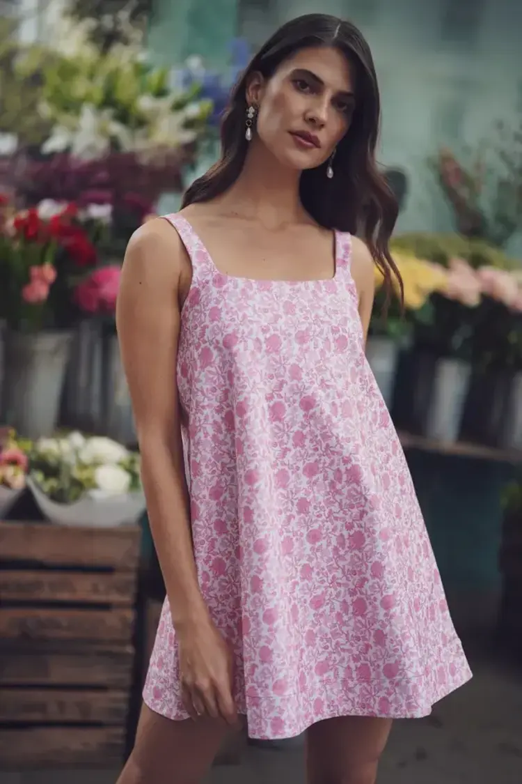 Meet the Helen Dress. Crafted from a performance stretch woven fabric, the Helen features a flirty mini length and square neckline for effortless, playful style.