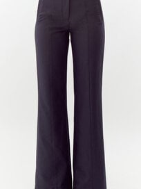 Navy sweater crafted in lightweight knit with green ruffle detail on the neckline and sleeve cuffs. Straight hem, regular fit and soft texture. Ideal for autumn-winter layering and everyday wear. Soft, lightweight texture in wool blend fabric.
