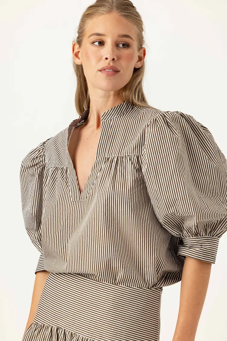 • Made in the seasons' standout lurex stripe accented with subtle gold lurex detail