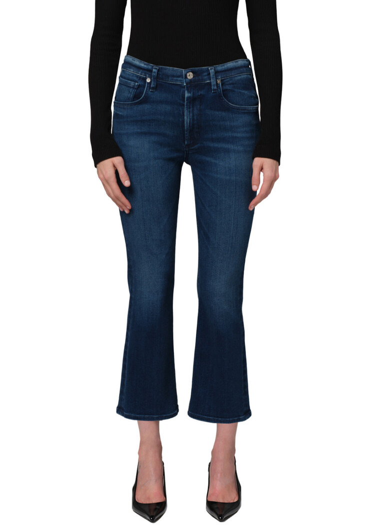 • The Isola is a mid-rise cropped bootcut designed for everyday ease. Crafted from soft stretch denim with a lightweight feel, it offers a flattering fit with lasting comfort. The Regency wash—a dark indigo with soft fading, marbling, and whiskering.