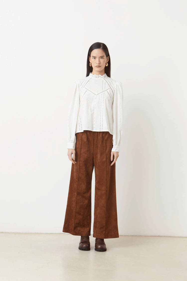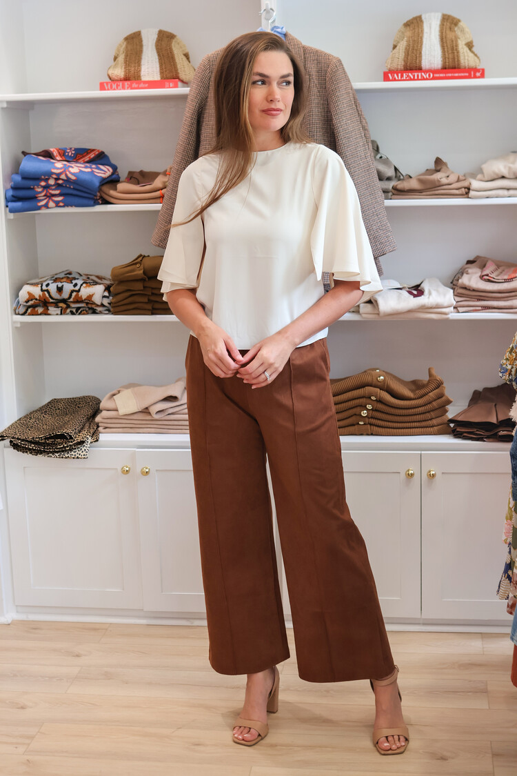 • -Wide-leg faux suede pants