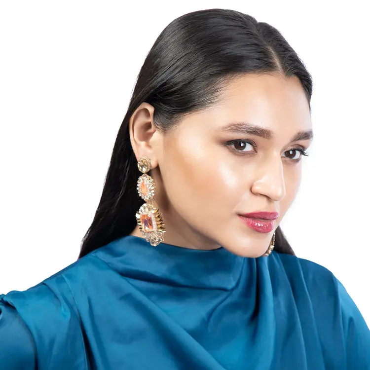 Elevate your style with the sophisticated Alianah Earrings. These stunning earrings feature a crystal look that catches the light, adding a touch of luxury to any outfit. The jewel tones add a pop of color, making them the perfect statement piece!