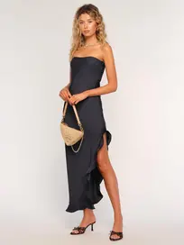 Constructed with precision-placed diagonal stripes to elongate the frame, this midi is cut from a lightweight, silky fabric. A softly draped neckline, adjustable straps, and bias-cut to offer all-day comfort with a refined finish.