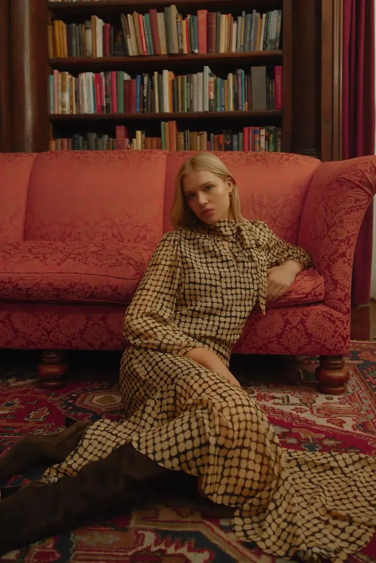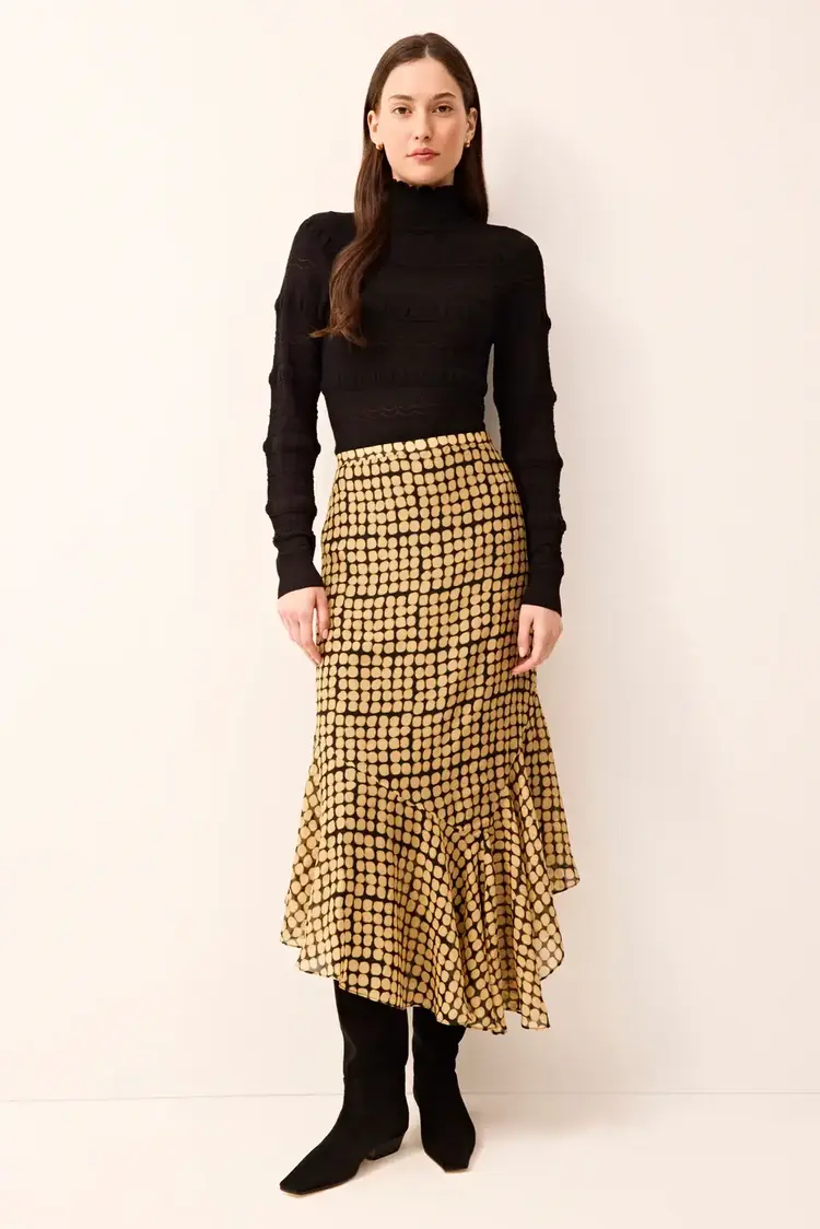 A modern take on the classic pussy-bow blouse, Vivianne stands out with a plunging keyhole neckline and the subtle metallic sheen of airy silk chiffon. For a head-to-toe effect, style with the matching Krista skirt.