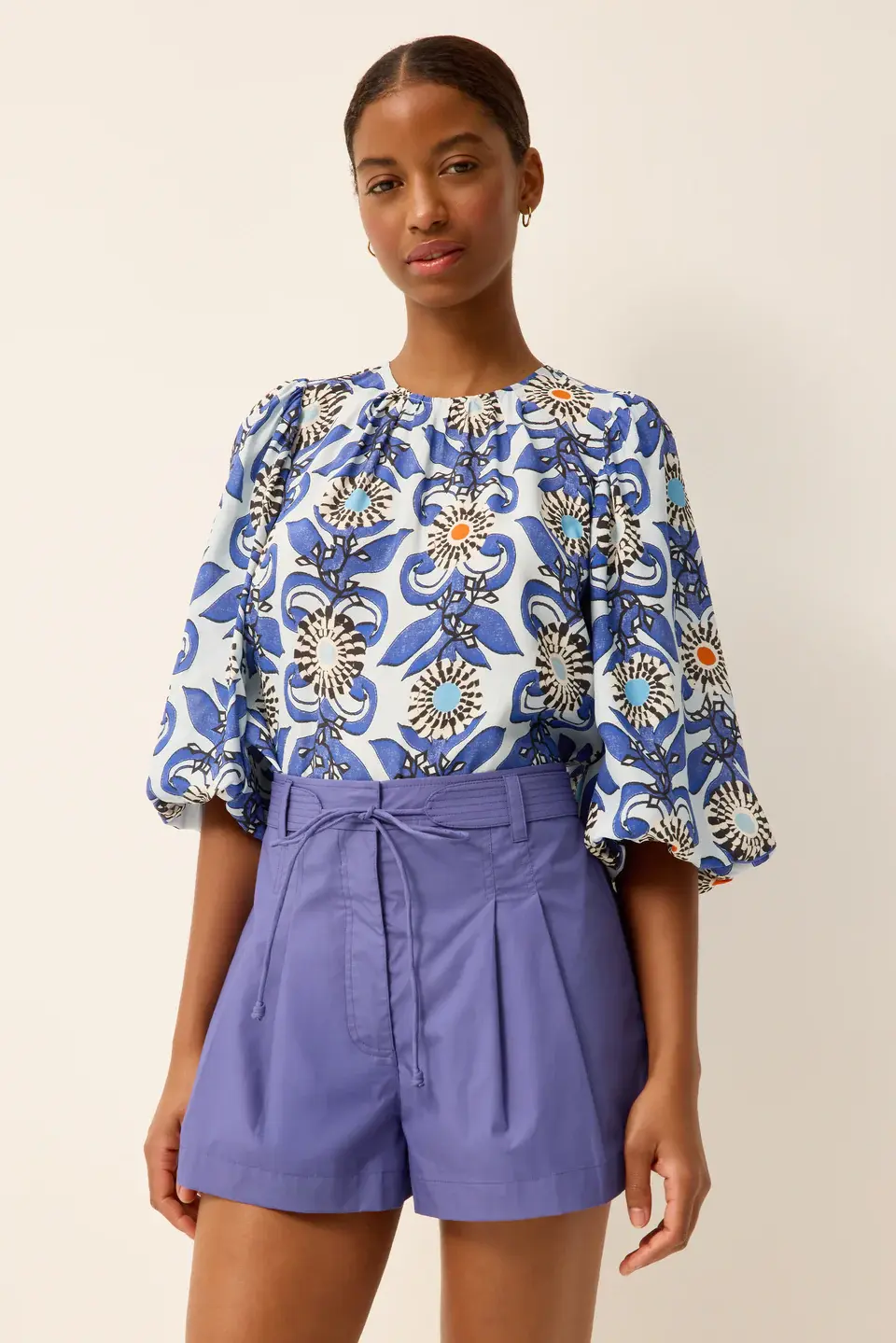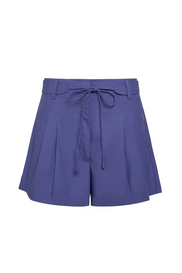• Equally feminine and utilitarian, our A-line Lander short is made from sleek Cotton chino with a pleated silhouette that creates a beautiful fit. Designed to sit high on your waist, it has a removable belt with long, corded end ties.