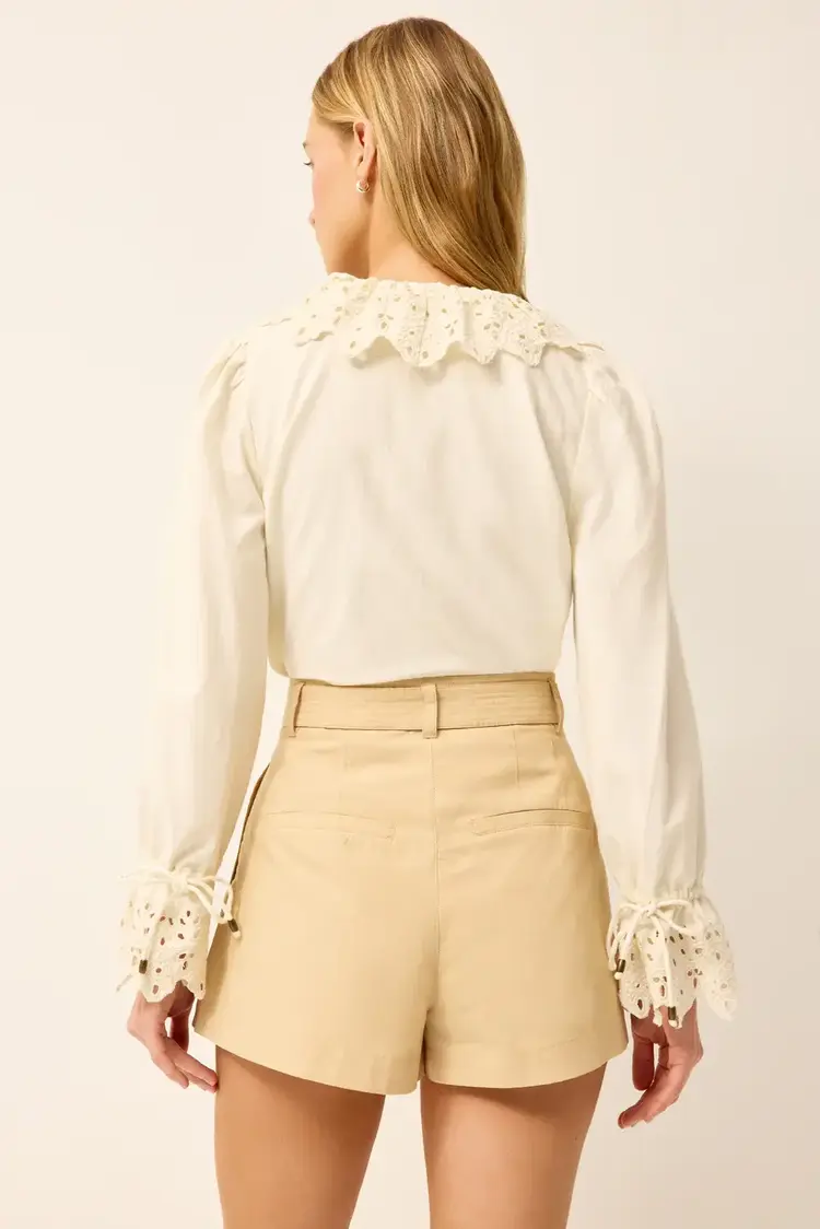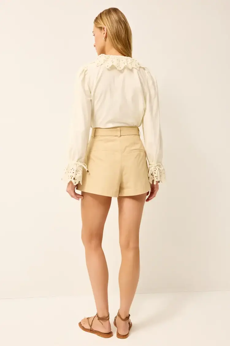 • Equally feminine and utilitarian, our A-line Lander short is made from sleek Cotton chino with a pleated silhouette that creates a beautiful fit. Designed to sit high on your waist, it has a removable belt with long, corded end ties.