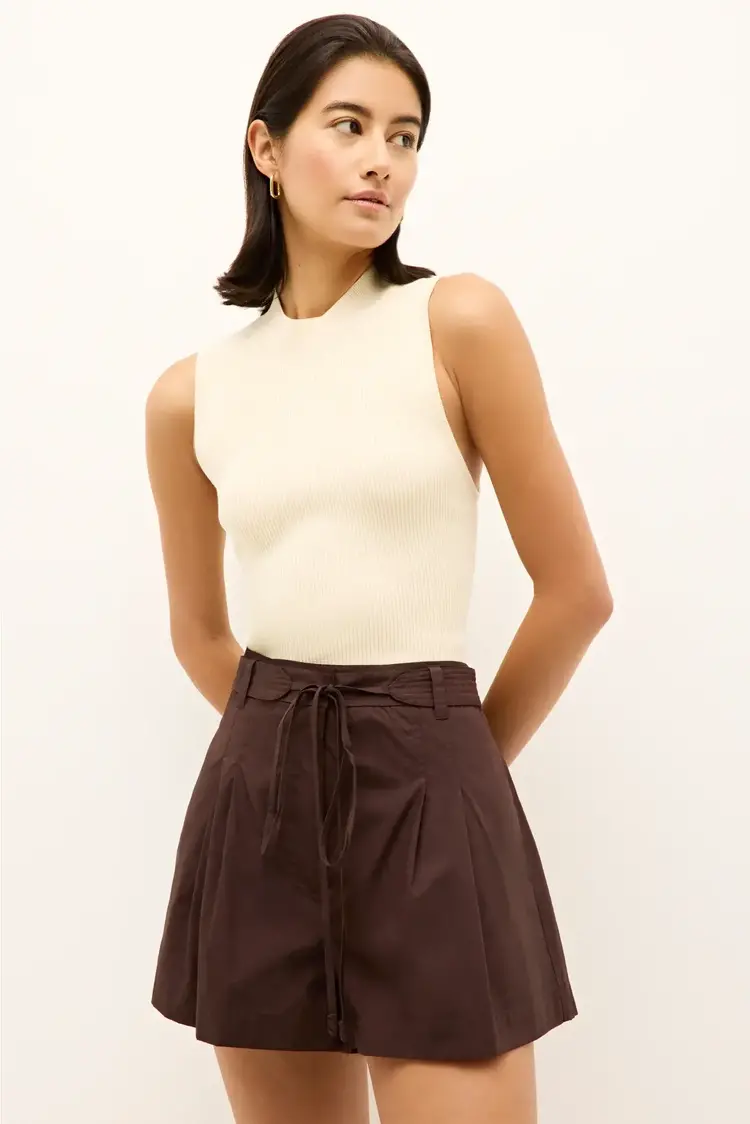 • Lander’s tailored pleats result in a fit that’s as flattering and feminine as it is utilitarian. Made from a sleek cotton chino, the A-line short is designed to sit high on your waist and features a removable belt with long, corded ties.