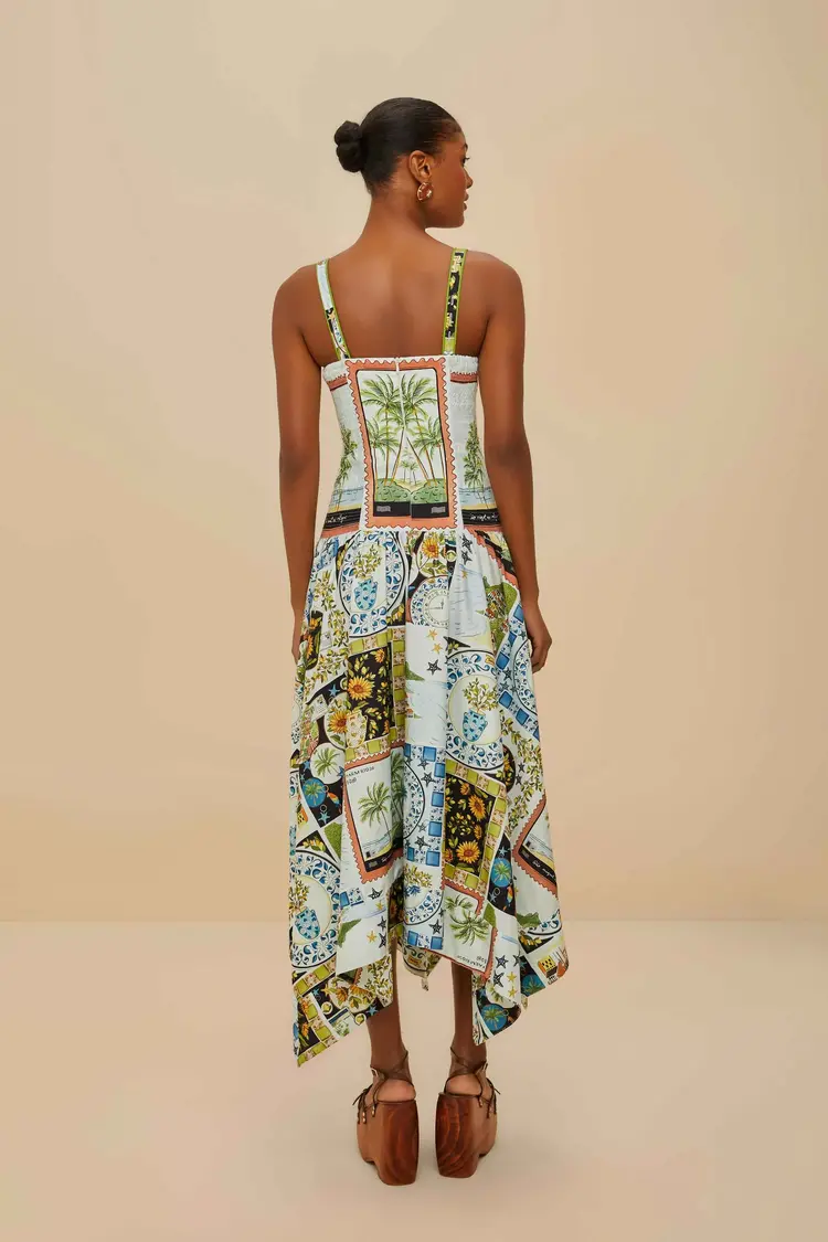 Step into a world of vibrant wonder with the Latin Trip Scarves Dress. This captivating piece features a playful patchwork of lively patterns, each telling its own story. The square neckline and flowing silhouette complement the whimsical design!