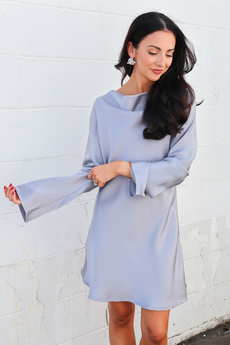 • The Deluc Onyx Grey Ligustrum Dress is a sleek and modern piece that combines minimalism with a touch of elegance, perfect for versatile styling.