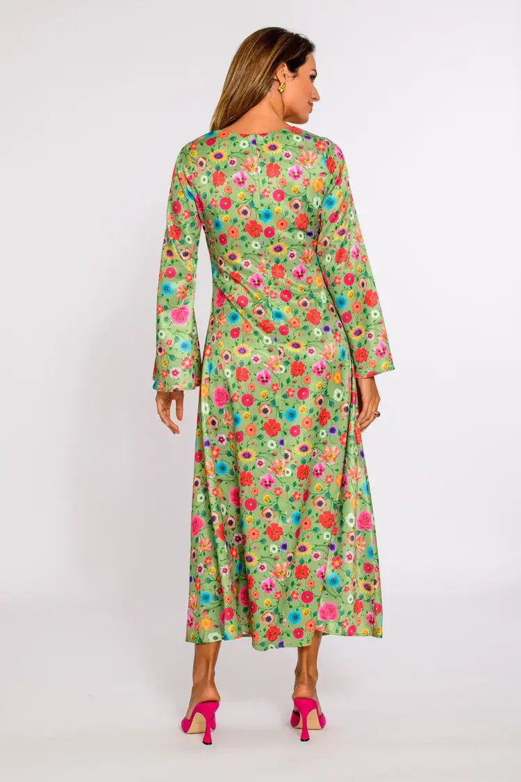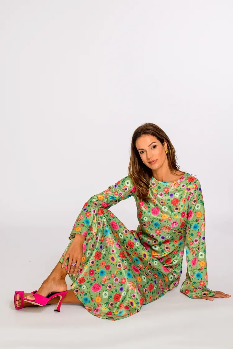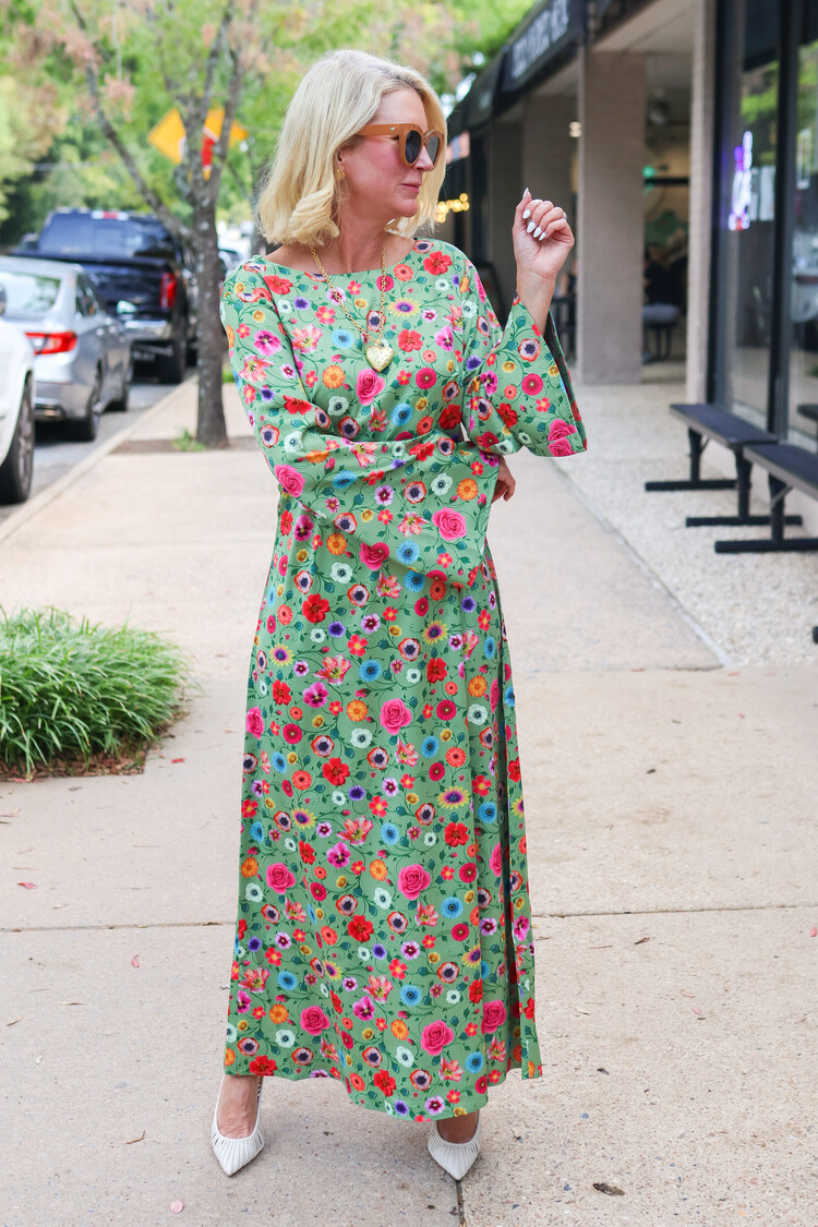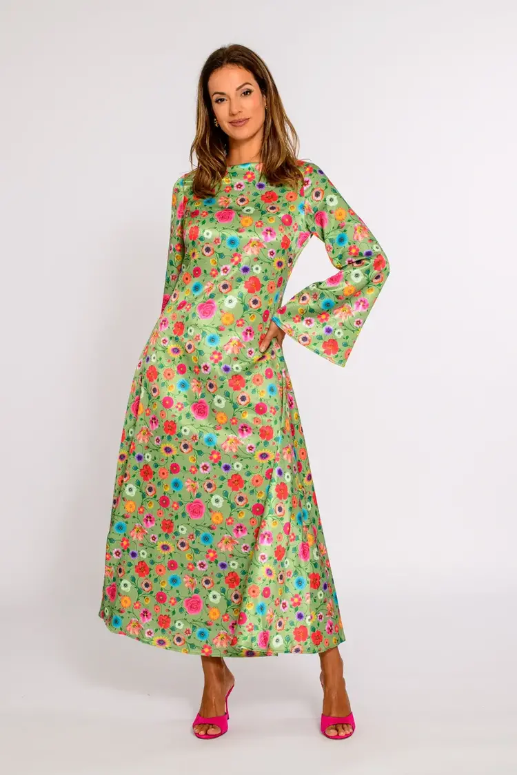 • Meet Lily, our new silky satin maxi dress for the Fall season. She is simple yet sophisticated, with a tapered silhouette, long bell sleeves, and a slightly flared hem.