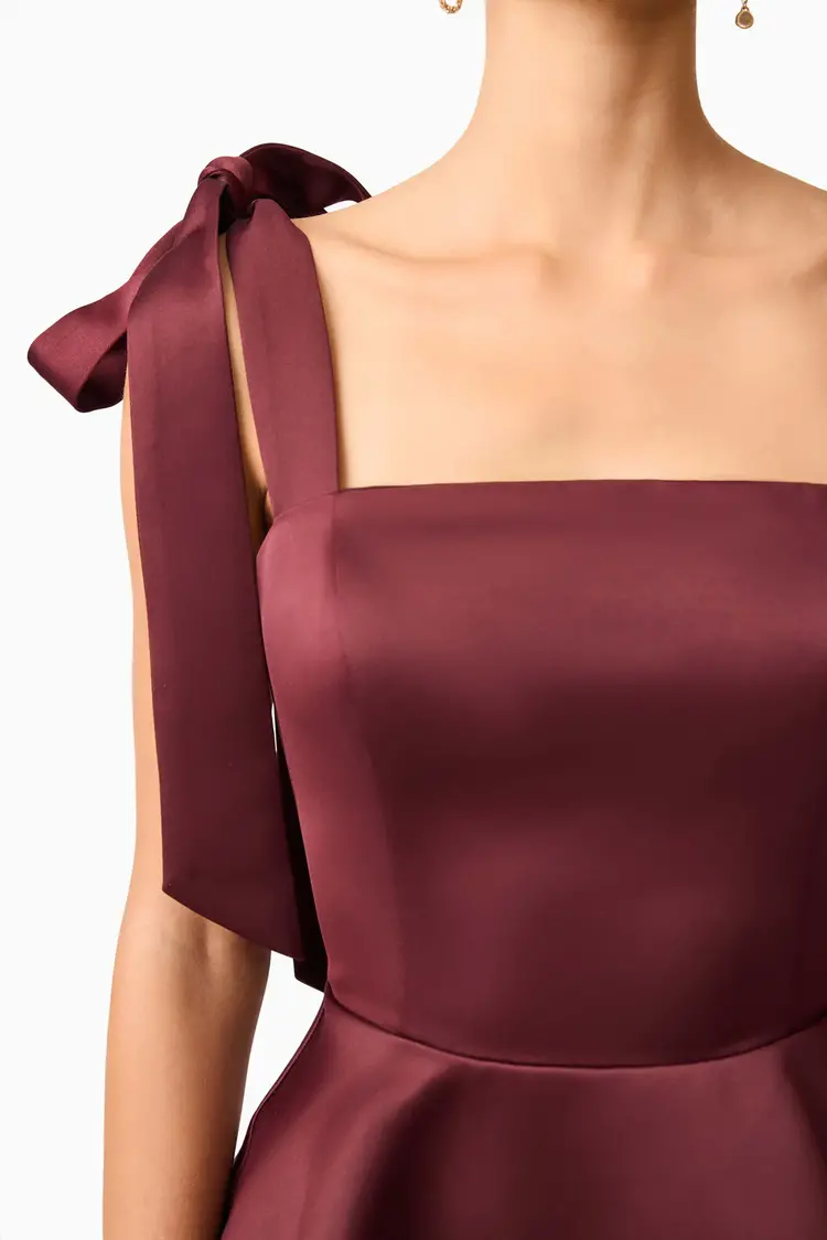The Livia Dress is designed to turn heads with its sleek, structured fit and elegant detailing. Crafted from a high-shine duchess satin fabrication, this style features a flattering straight neckline that frames the collarbone with minimalist appeal.