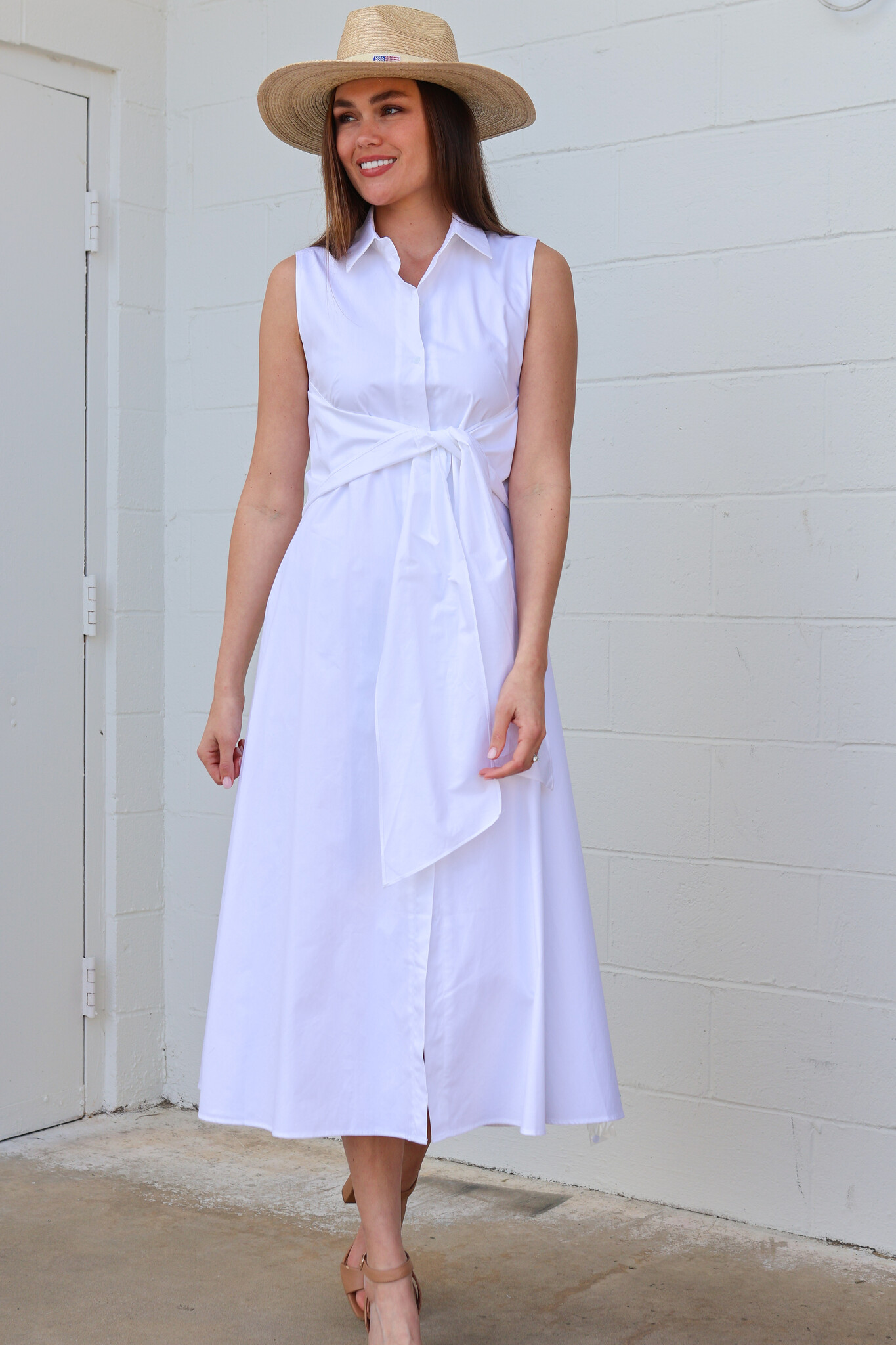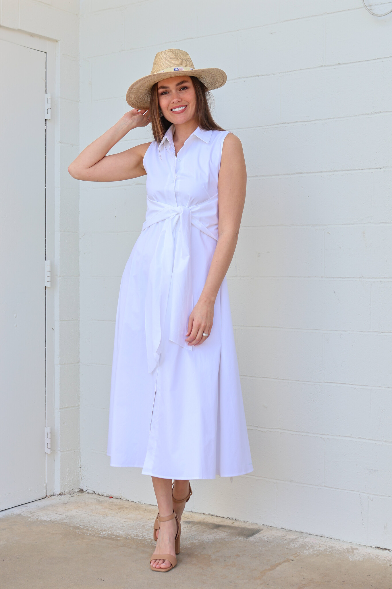 Escape to effortless elegance with this crisp white poplin shirt dress. Perfect for sun-soaked getaways or everyday sophistication, its clean lines and breathable fabric keep you cool and polished from morning to night.