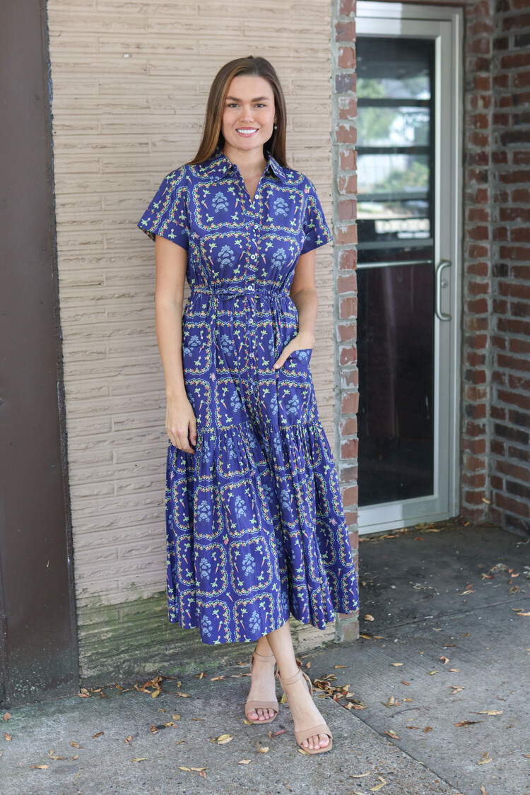 • This midi-length beauty showcases a classic shirt dress silhouette with modern updates including a flattering tie waist and playful tiered ruffle hem that adds movement and feminine charm.