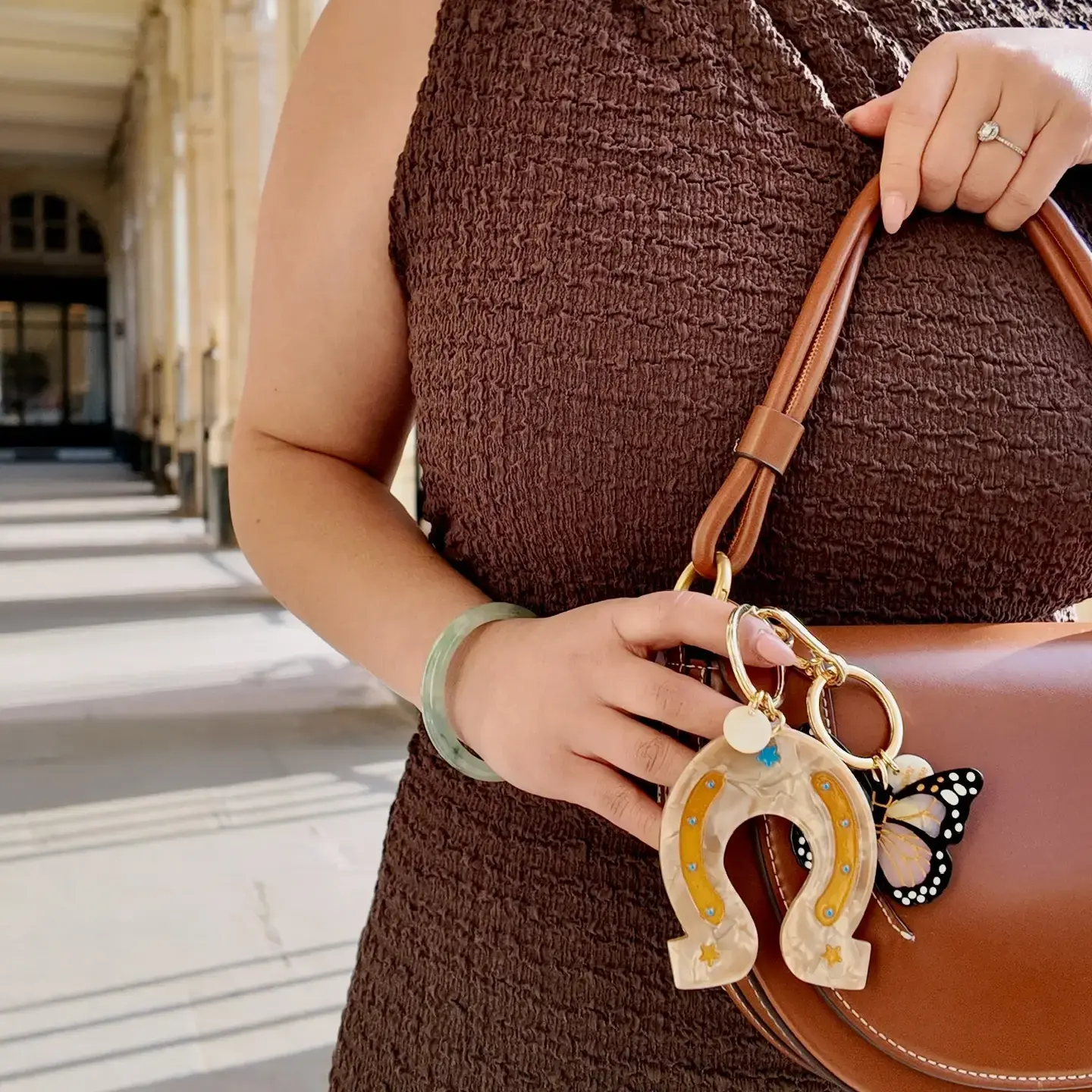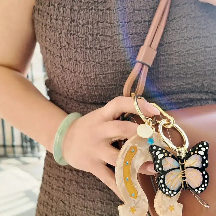 It's designed in NYC to upgrade your favorite bag or set of keys. The charm is hand-painted on both sides, for an iconic look from all angles. Crafted with our super-strong biodegradable acetate, our pieces can be used as a bag charm or a keychain.