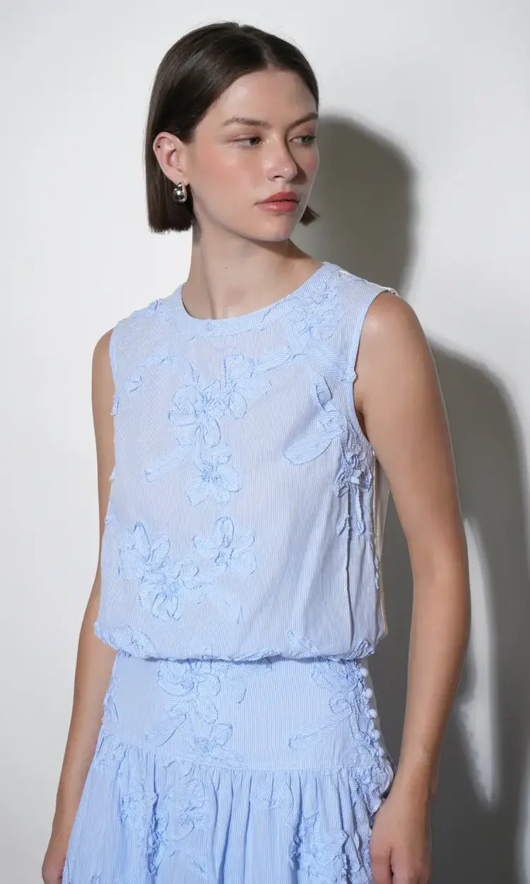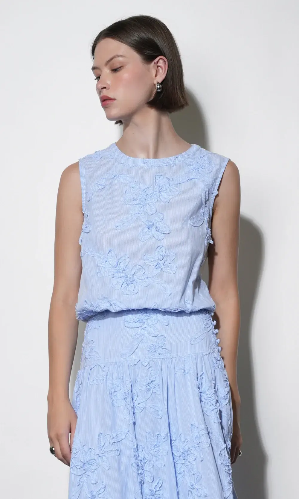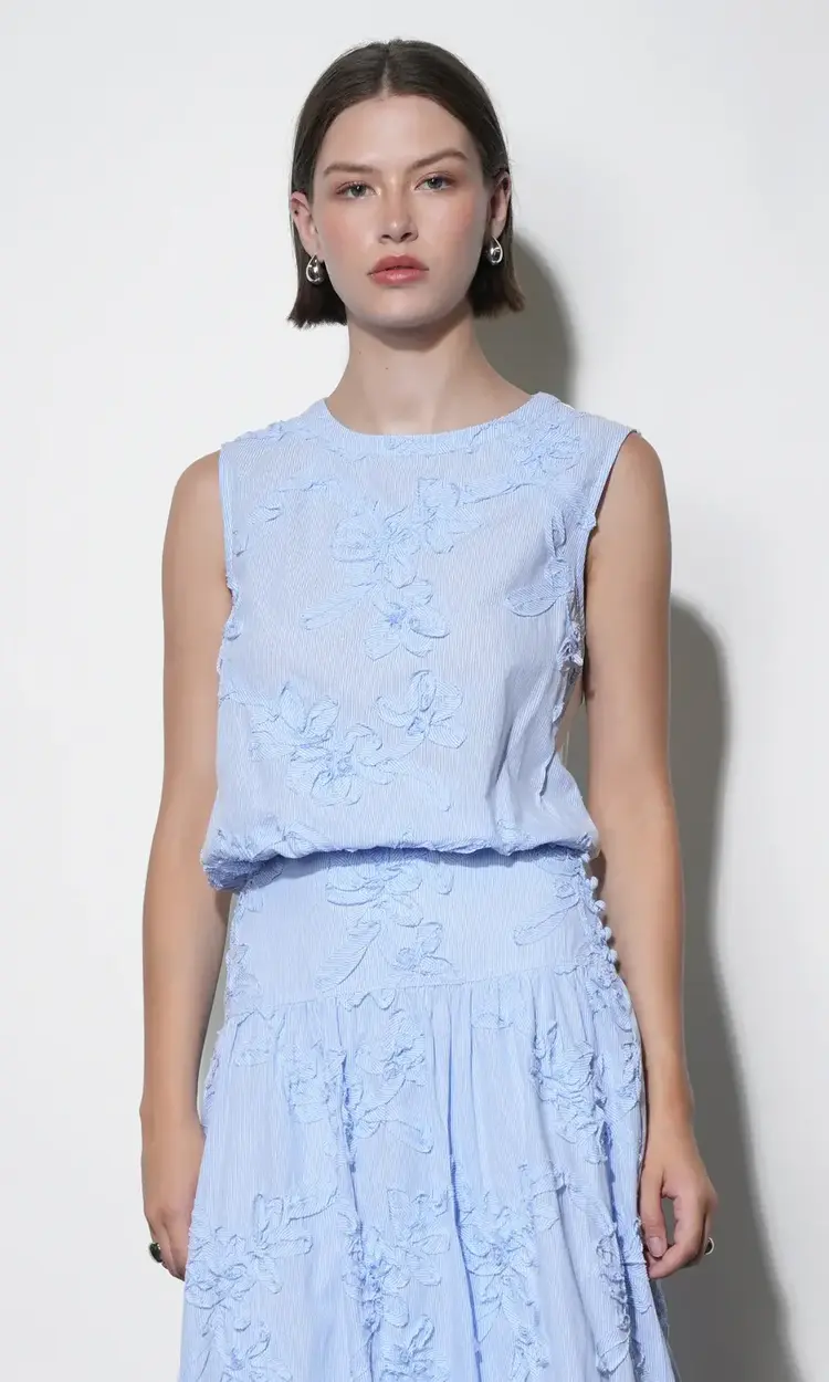 Rendered in a refreshing, sky-toned Light Blue, the Lucy top is all about the "wow" factor of its sleeves. The body is crafted from a premium cotton-blend knit for a comfortable, while featuring a bubble silhouette made from a crisp woven fabric.