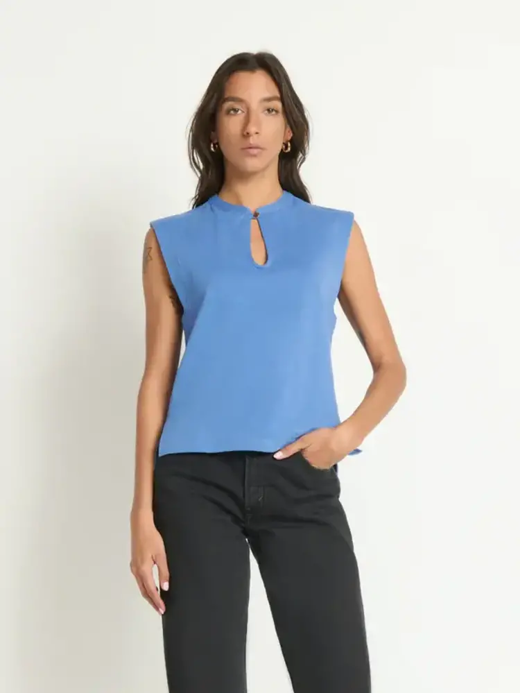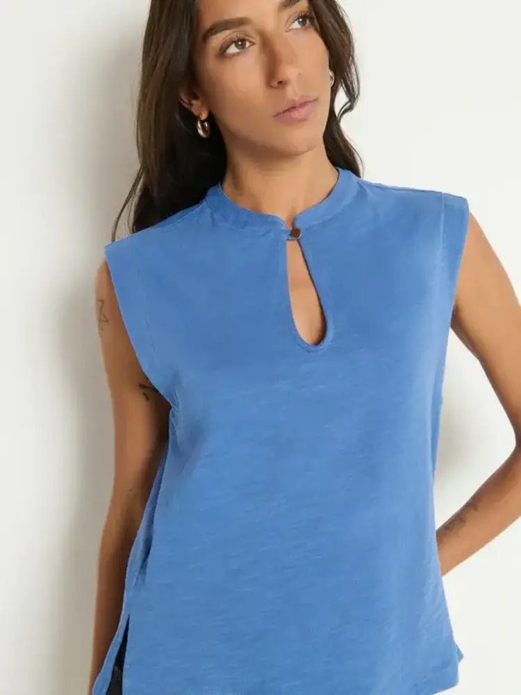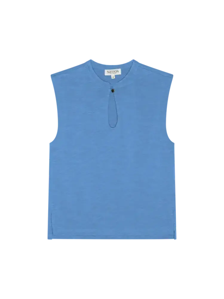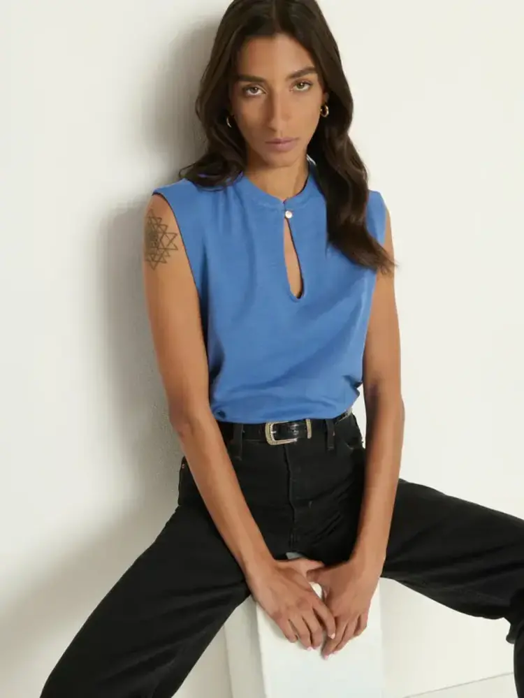 • A relaxed-fit tank that might become your next uniform, the Luna is made from thicker, structured cotton and has a button keyhole closure at the neckline. This one comes in Harbor Blue.