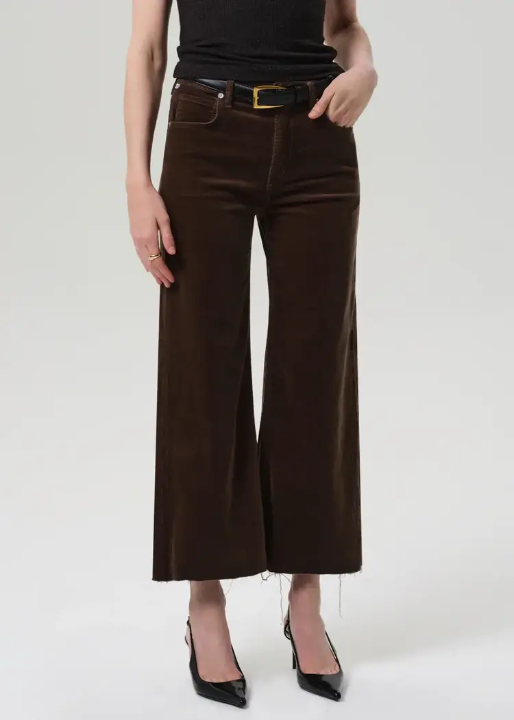 • The Lyra is a vintage-inspired wide leg that sits high on the waist with a relaxed top block and cropped inseam for a modern, voluminous silhouette.