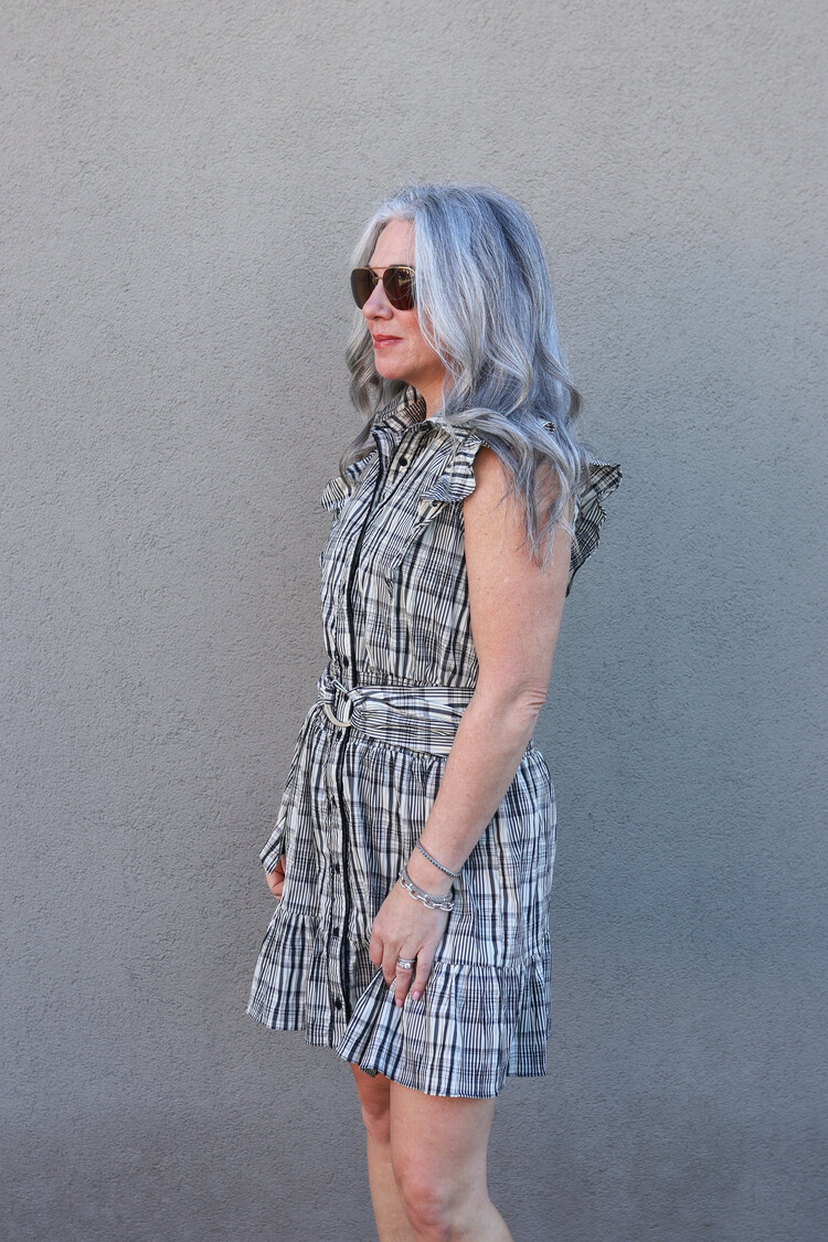 Crafted from premium fabrication, the dress maintains its structure while offering a regular fit that flatters a variety of body shapes. The fabric has no stretch, providing a crisp, polished appearance that holds its shape from day to evening events.