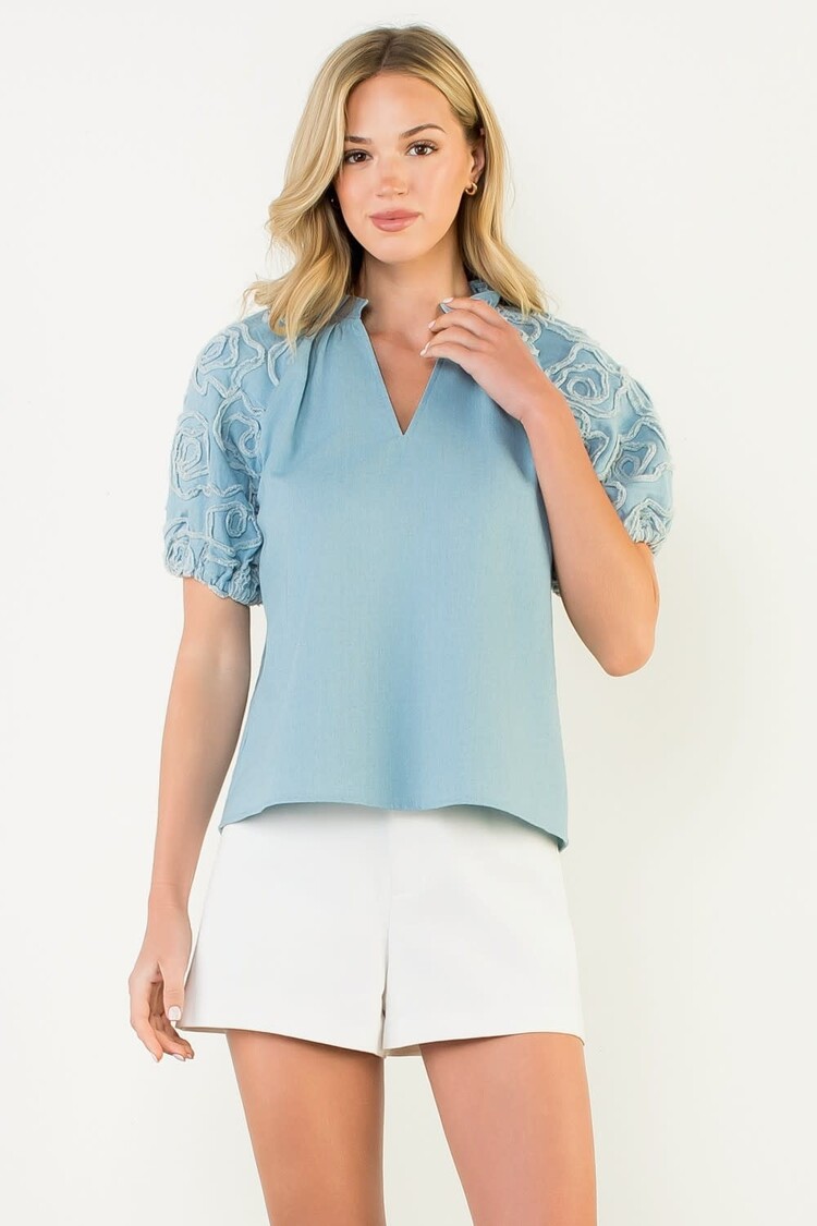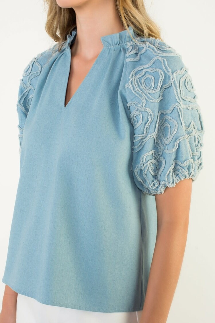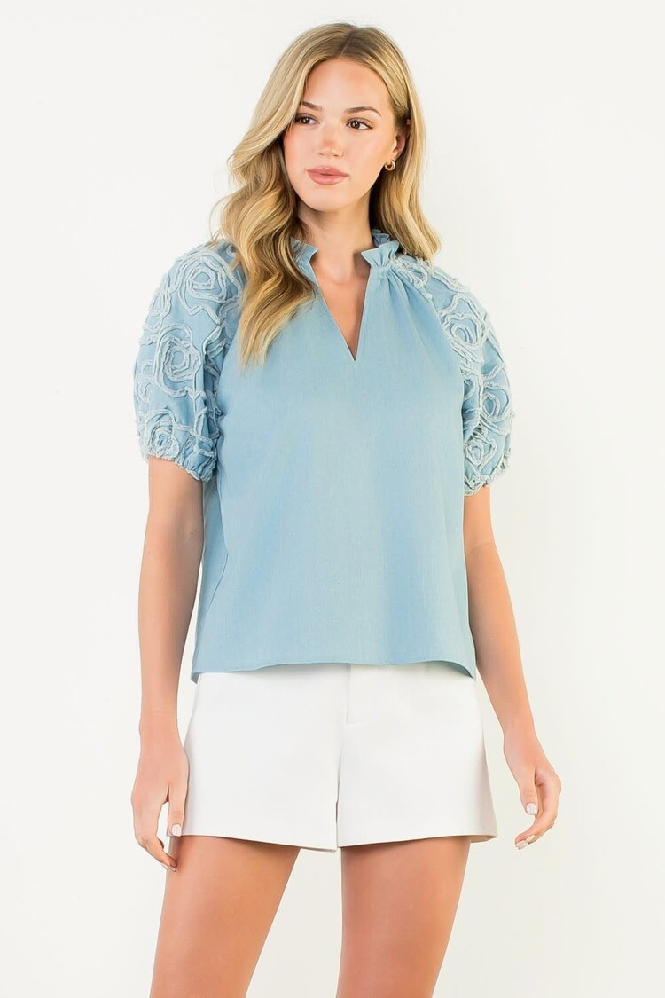The Charlie Top is crafted with 100% cotton poplin, giving it a light and breathable construction. Its new ruffle sleeve design adds a stylish twist to a classic structured fit. Perfect for the warmer months.