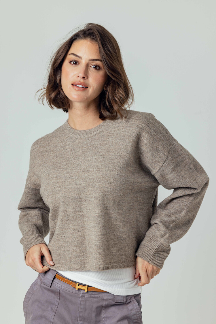 • The ease of a sweatshirt, elevated as a sweater. Meet Magda, designed with a classic high crew neckline and relaxed drop shoulders, it’s intentionally boxy. The slightly cropped length sits just above the hips.