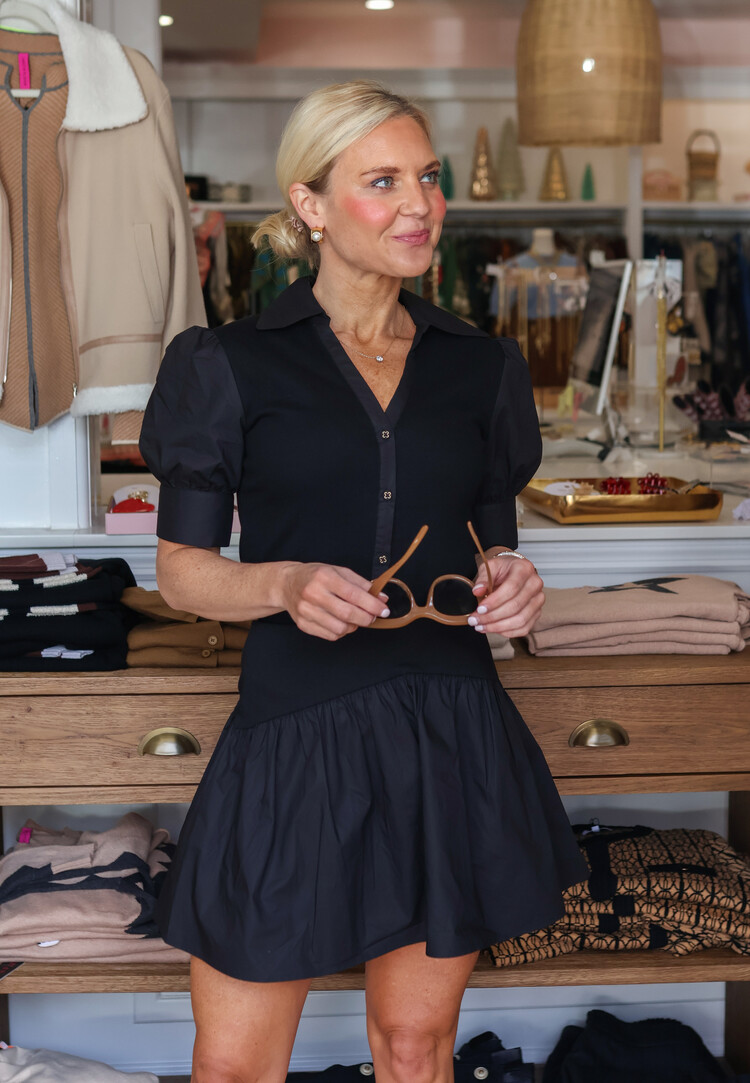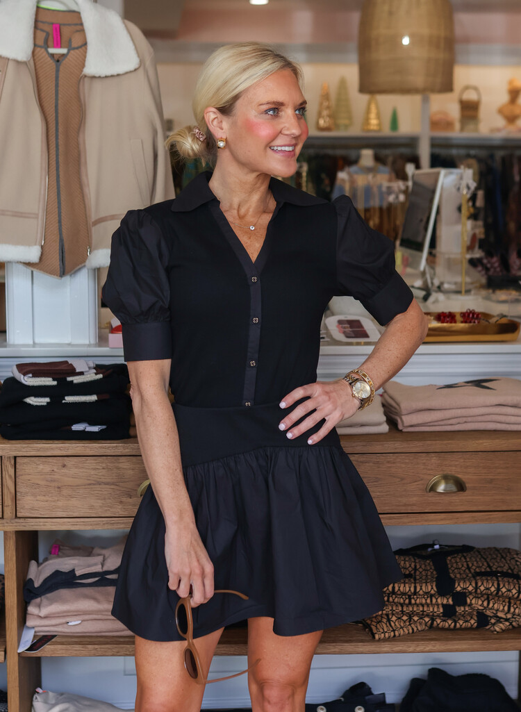 • Mixed-media design combining crisp cotton poplin with a ribbed waistband
