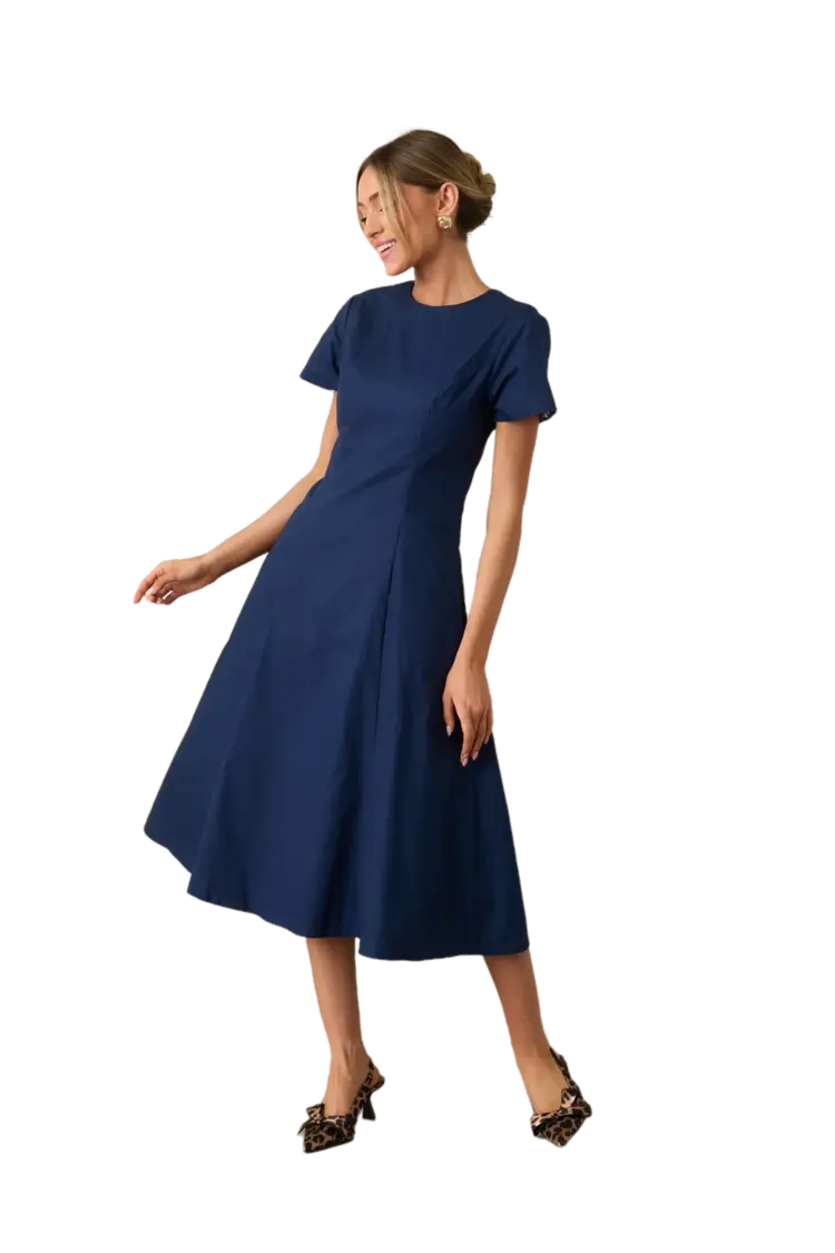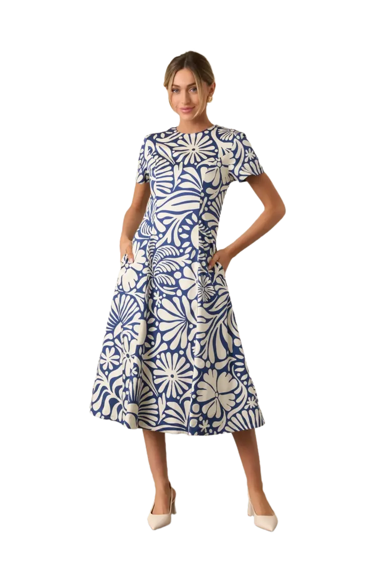 • Discover the playful charm of the Prosperina Margot Reversible Midi Dress, featuring a floral pattern on one side and a sleek navy on the other. Effortlessly switch up your look with a simple flip, while the back zipper ensures a perfect fit every time.