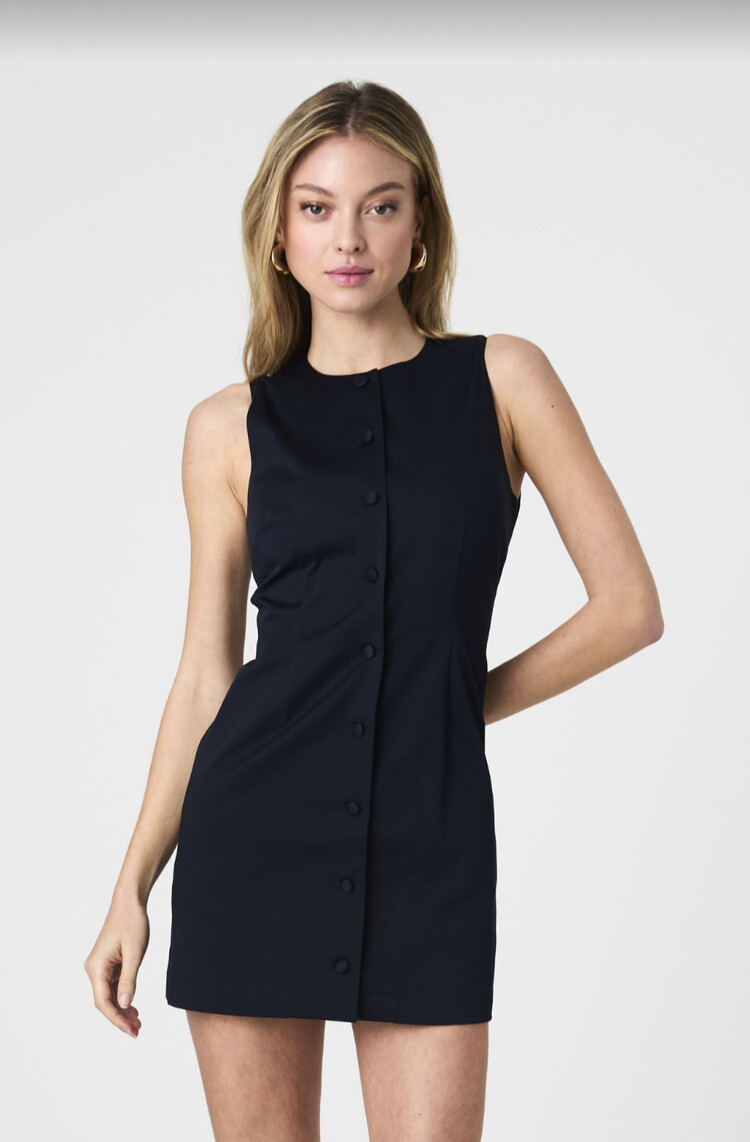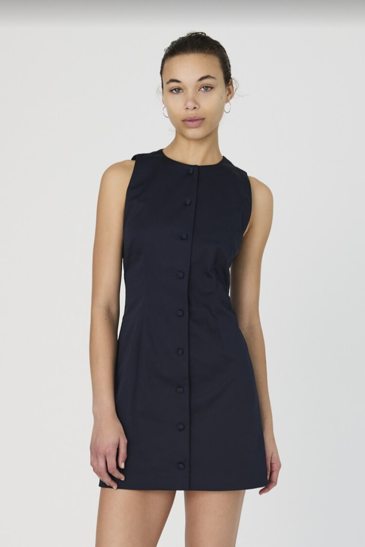 • If smart and sophisticated were a summer dress. The Cotton Sateen Round Neck Dress features a polished round neckline and self-covered buttons that run all the way down. Tailored just enough to keep things refined, but light enough for warm-weather plans.