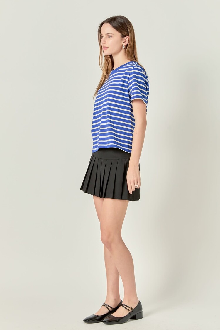 With a mock, ribbed neckline, front and back yoke, and a functional gold snap closure at the shoulder, this tee is soon to be your seasonless go-to. This one comes in Jet Black Color Block.
