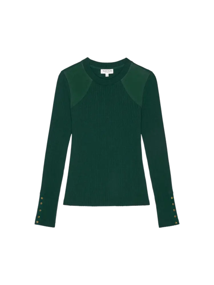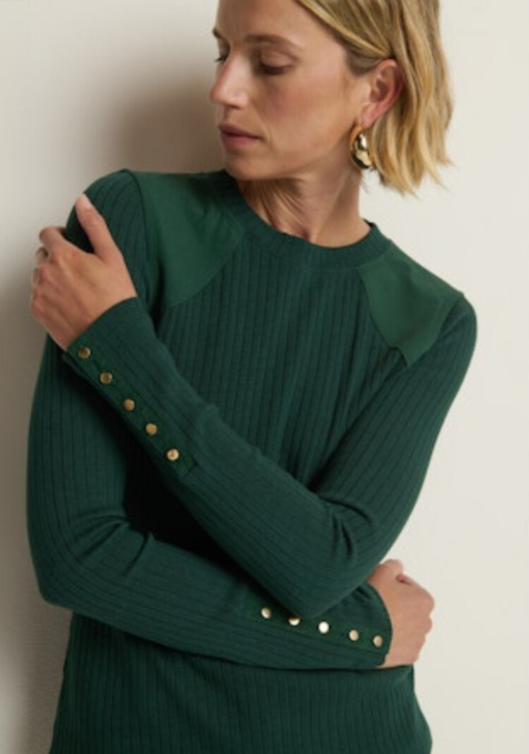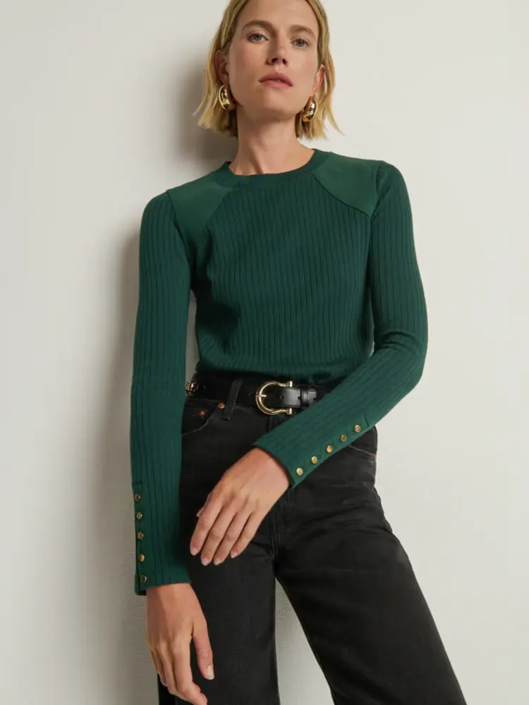 • The Maxine Long Sleeve is a flattering, fitted core piece with a crew neck, shank button cuffs, and contrast poplin yoke detail at the shoulders. Finished with an irresistibly soft rib, so anyone who brushes by won’t stop asking where it’s from.