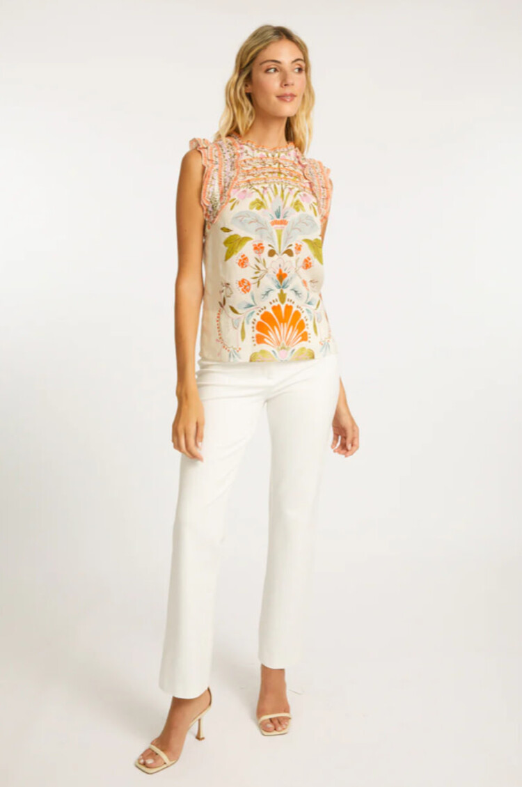 • Embrace a boho-chic vibe this spring with the Micheline Top, designed to capture the carefree essence of the season. Featuring layers of delicate ruffles around the neck and armholes, this top offers a relaxed fit that ensures both comfort and style.