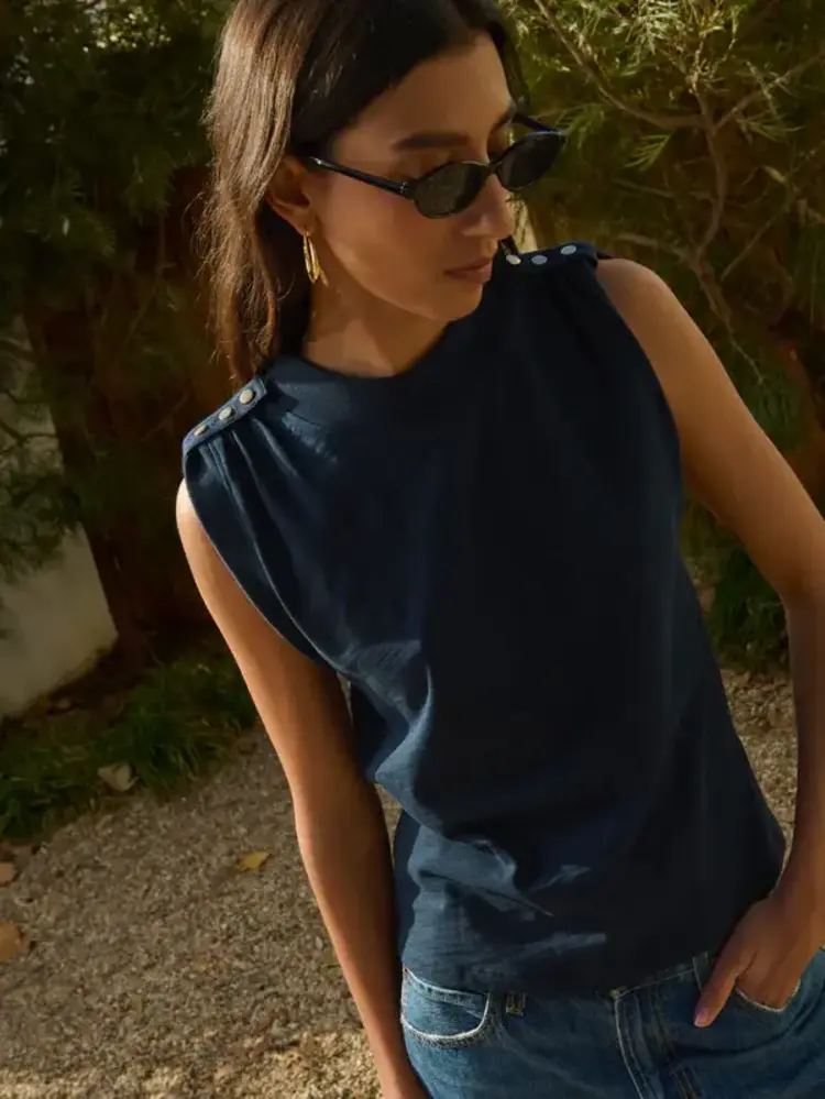 • Smooth cotton jersey in a signature fit, with just a touch of gold hardware. Mikka is simple, thoughtful, and effortlessly put together.