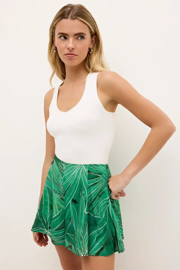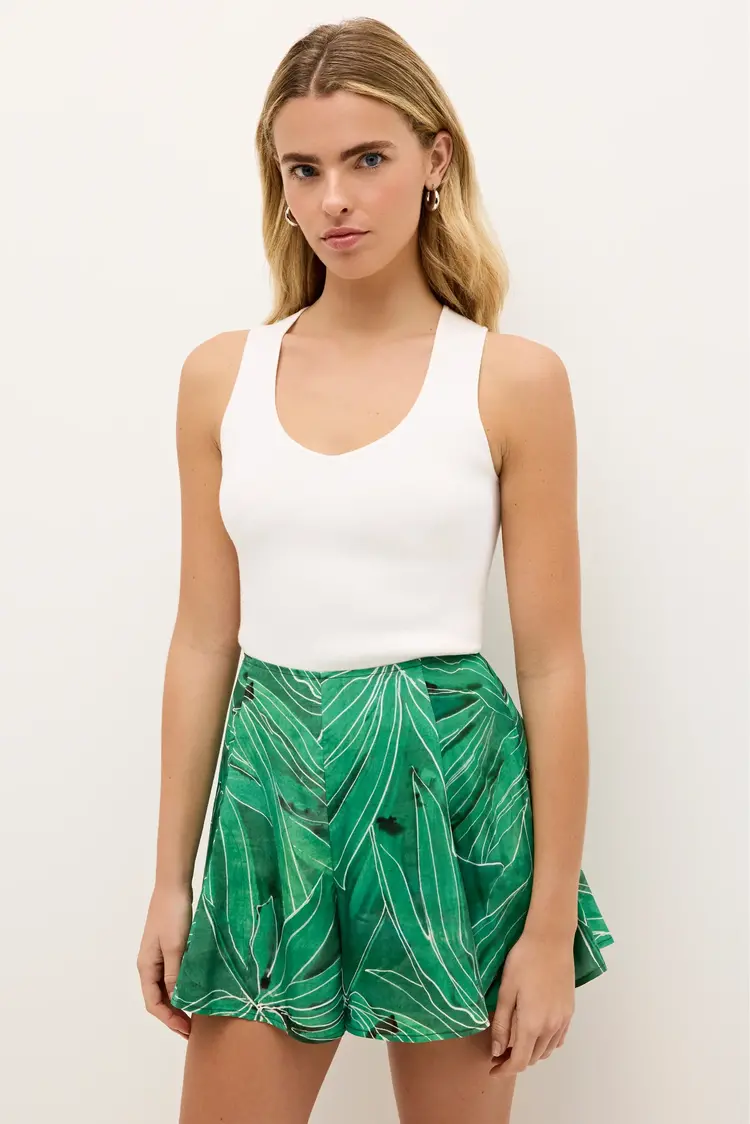 • The newest addition to our collection of statement shorts, Miles is cut from a silky viscose for a breezy elevated take on the summer style. Miles is designed to sit at your natural waist, and features wide legs that create a flattering A-line shape.