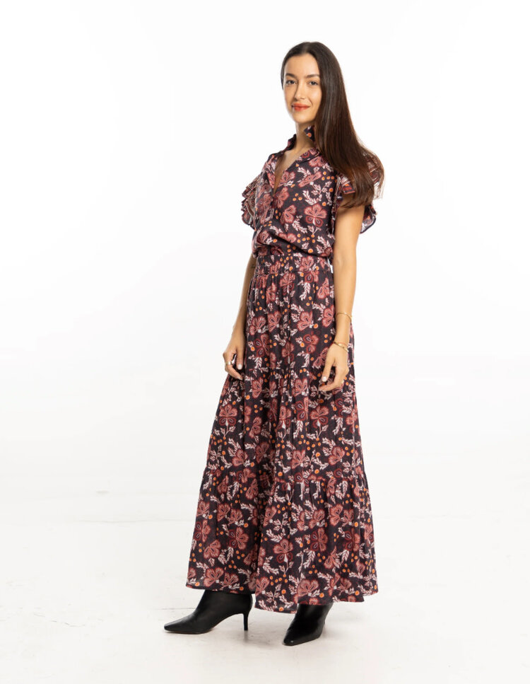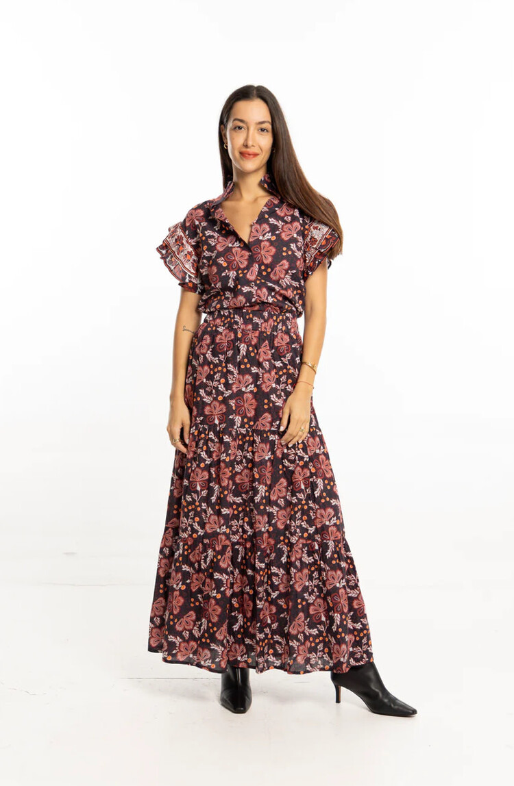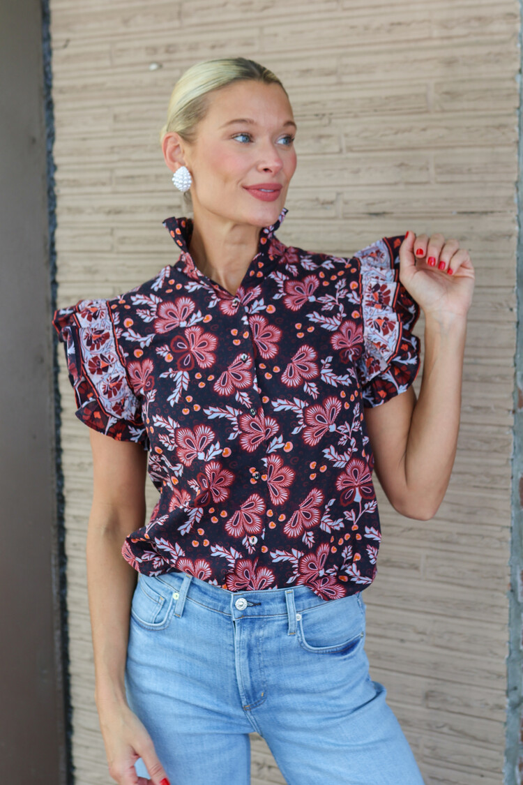 • Our Milly top, with flutter short sleeves, is crafted in pure cotton and adorned with seasonal floral motifs.