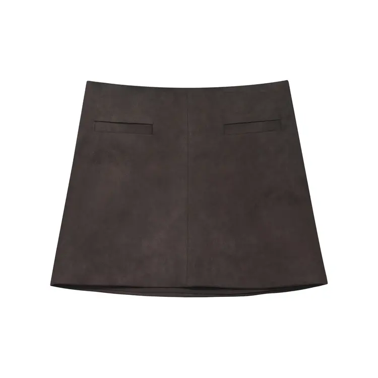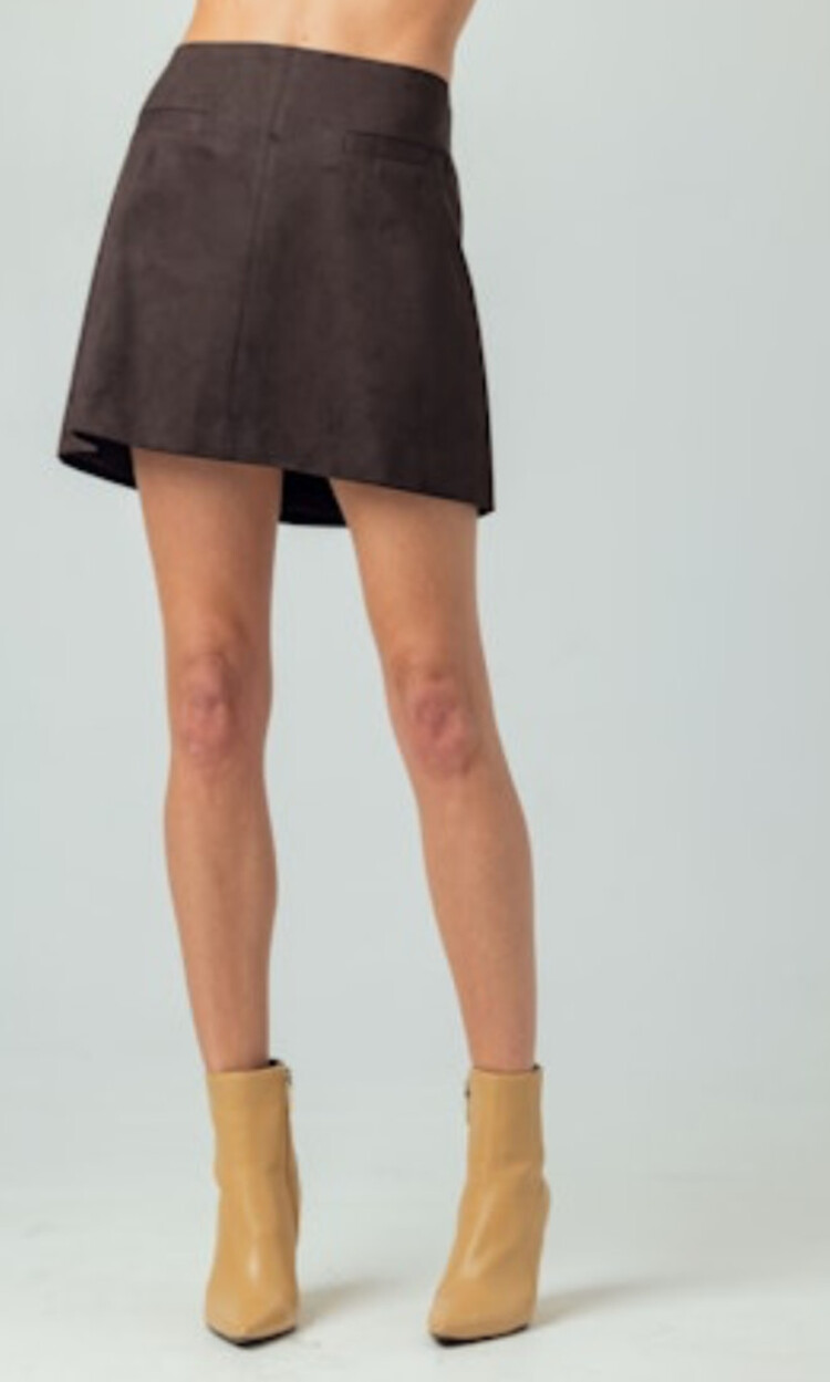 • Designed with faux front pockets for a styled finish and an invisible side zipper. This subtly A-line silhouette mini skirt is slightly fitted through the hip and fully lined. Length measures 14.5", hitting right at the tip of most wearers fingertips.