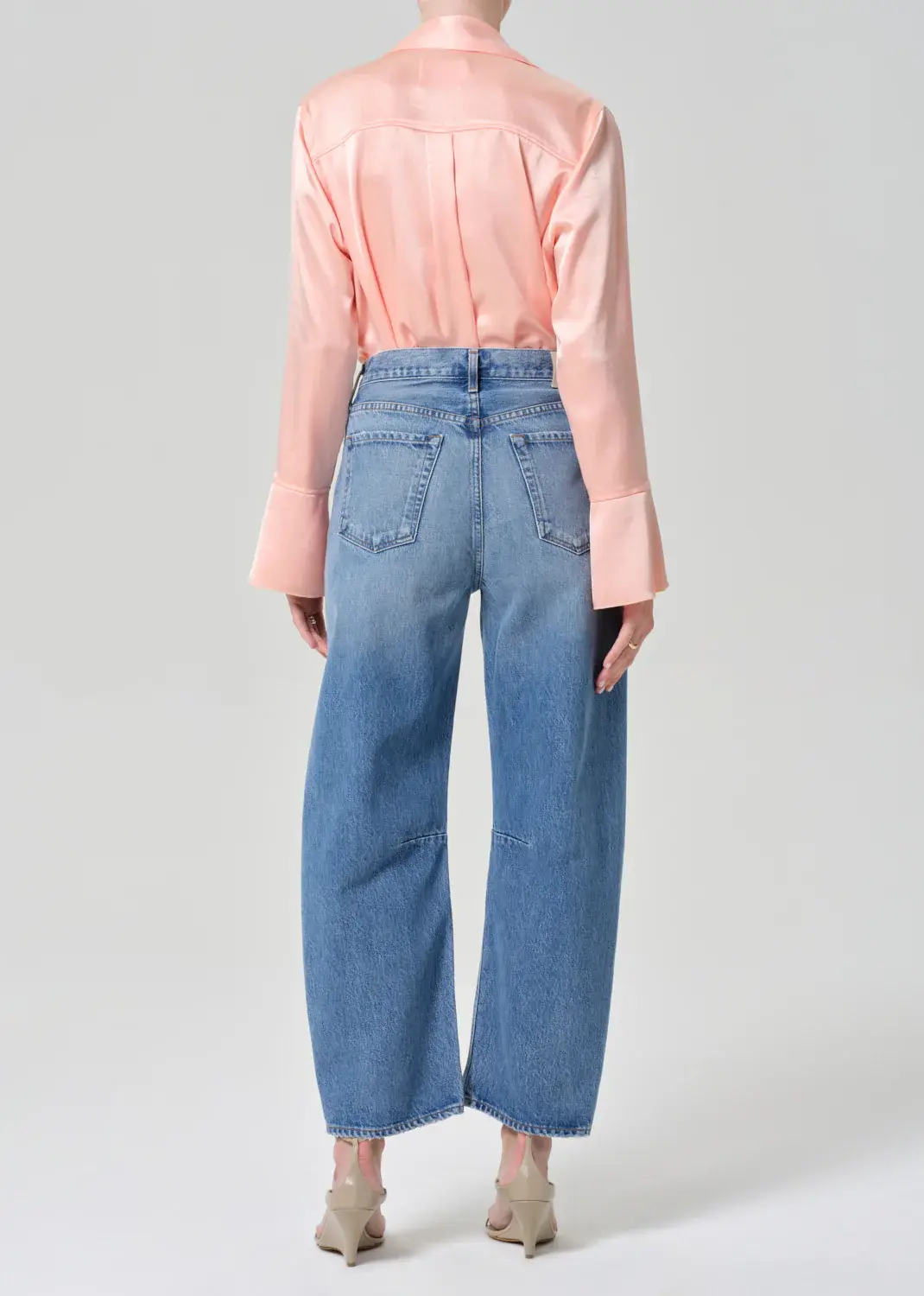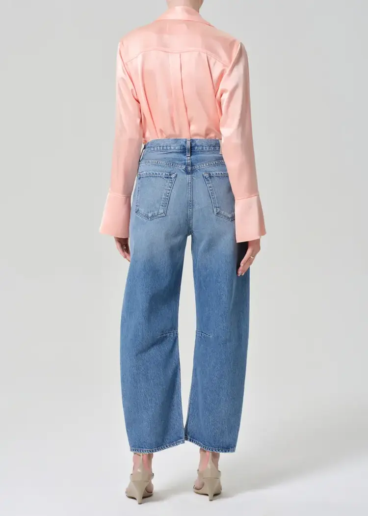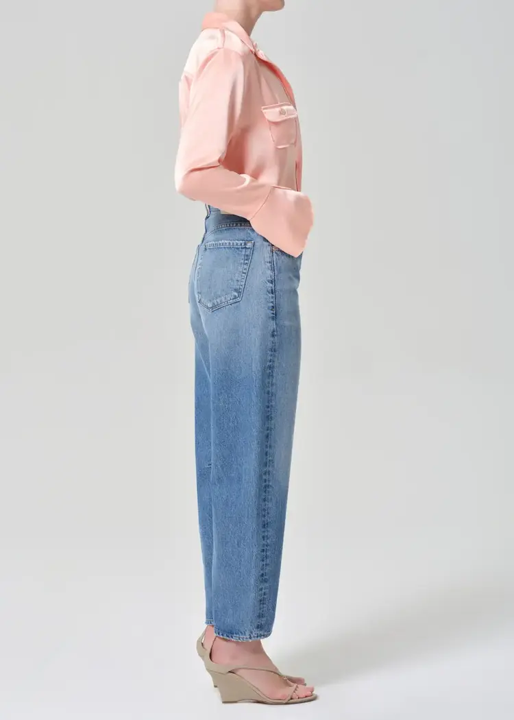 • The Miro offers a refined take on the barrel silhouette, sitting high at the waist with a relaxed shape that softly tapers to the ankle. Crafted from rigid regenerative cotton denim in the Lolita wash—a medium indigo.