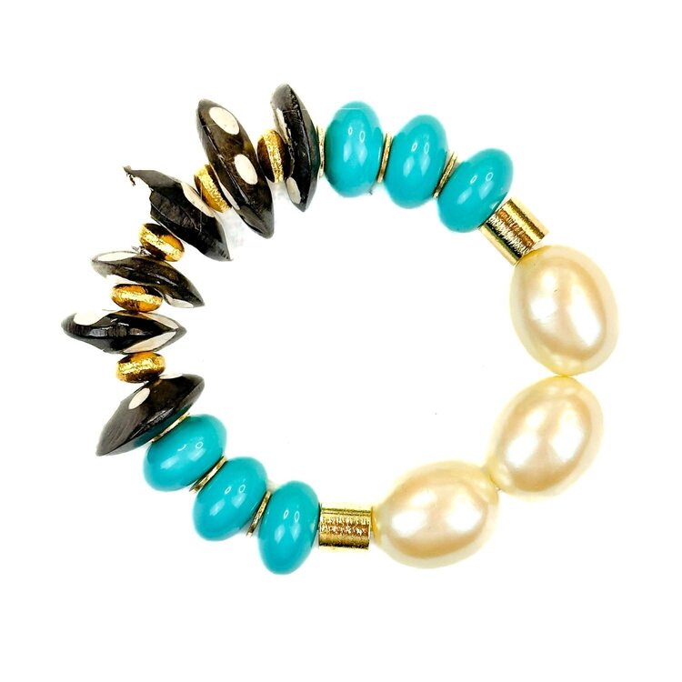 We are in love with these lightweight wooden earrings! Available in pink, blue and gold. Wood rings dangle from wood earring topper. Earrings aremhand-painted in pearl finish paints. Earrings are made from wood and are extremely lightweight.