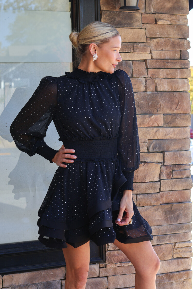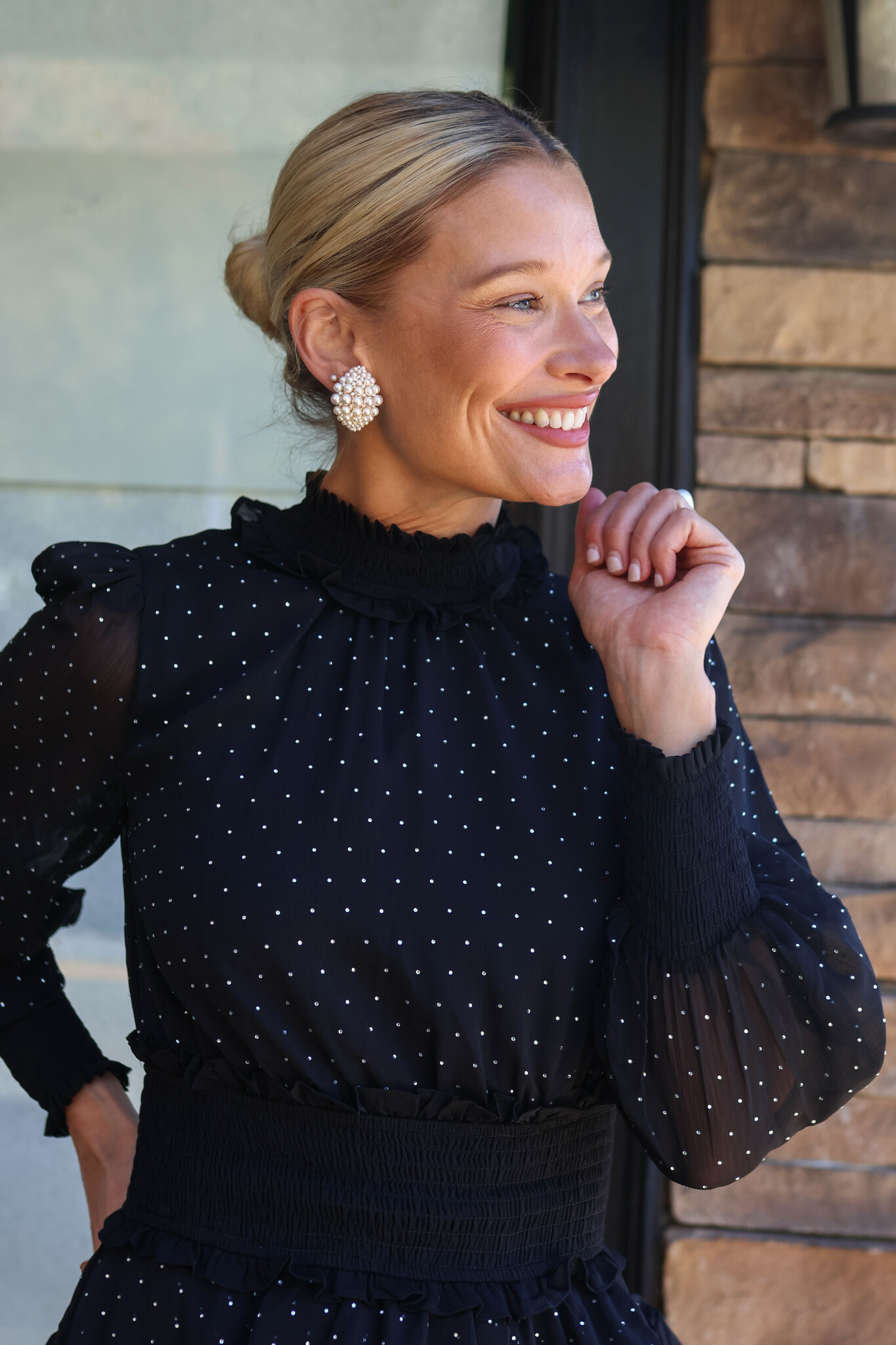 Polished with a playful twist, the Moss Embellished Dress in Black is a wardrobe staple that brings texture and structure into perfect balance. Crafted from georgette fabrication, this piece catches the light subtly while adding dimension and movement.