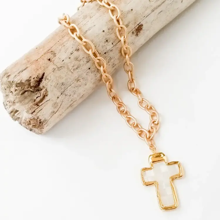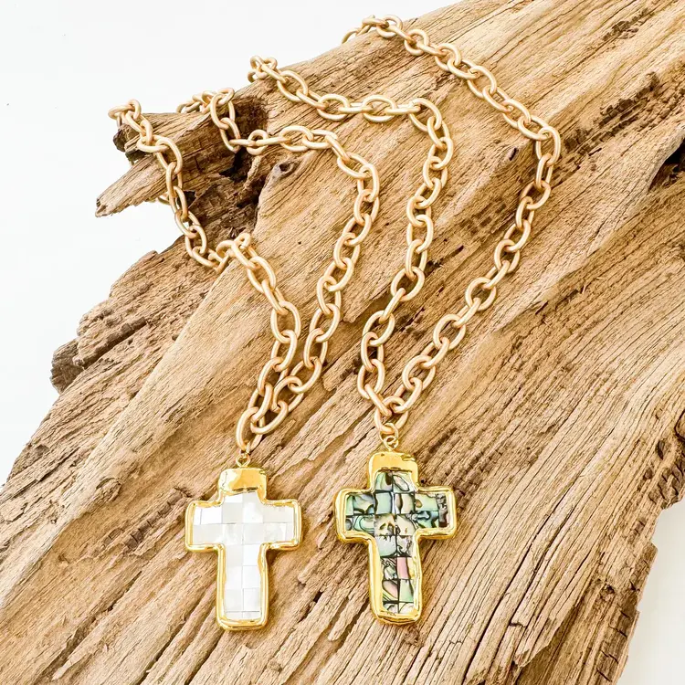 FINAL SALE! Mother of Pearl Cross Necklace