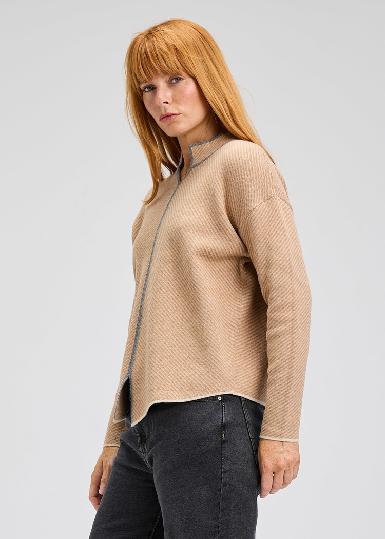 • The Neru Collar Sweater is an optimal choice for any event. Constructed with airy fabrics, it ensures a pleasant wear for a variety of occasions, from leisure activities to a day out. Its 95% Cotton/5% Cashmere composition ensures a pleasant fit.