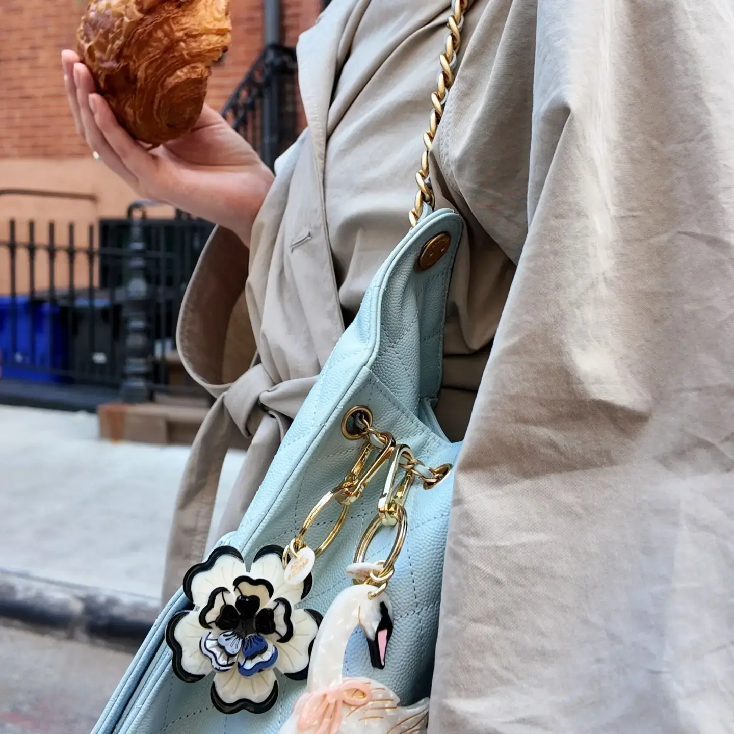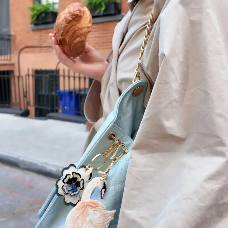 It's designed in NYC to upgrade your favorite bag or set of keys. The charm is hand-painted on both sides, for an iconic look from all angles. Crafted with our super-strong biodegradable acetate, our pieces can be used as a bag charm or a keychain.