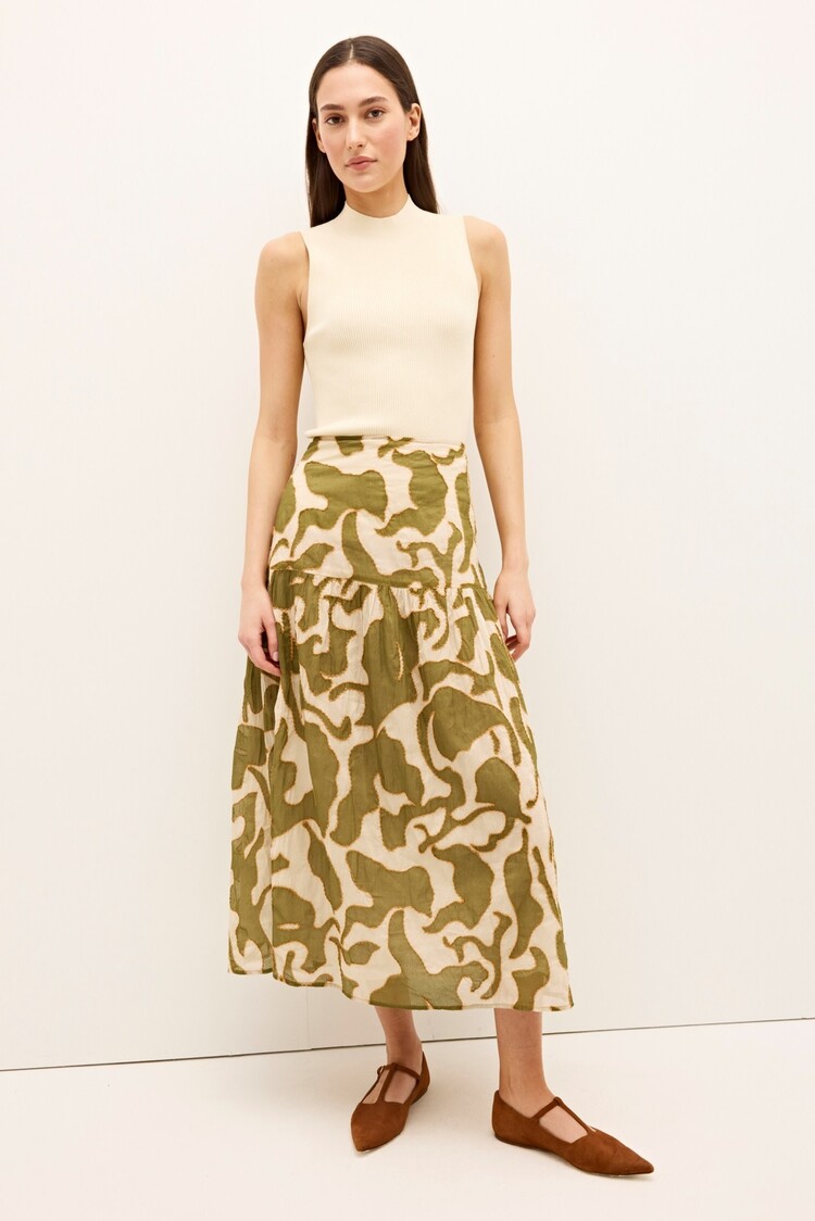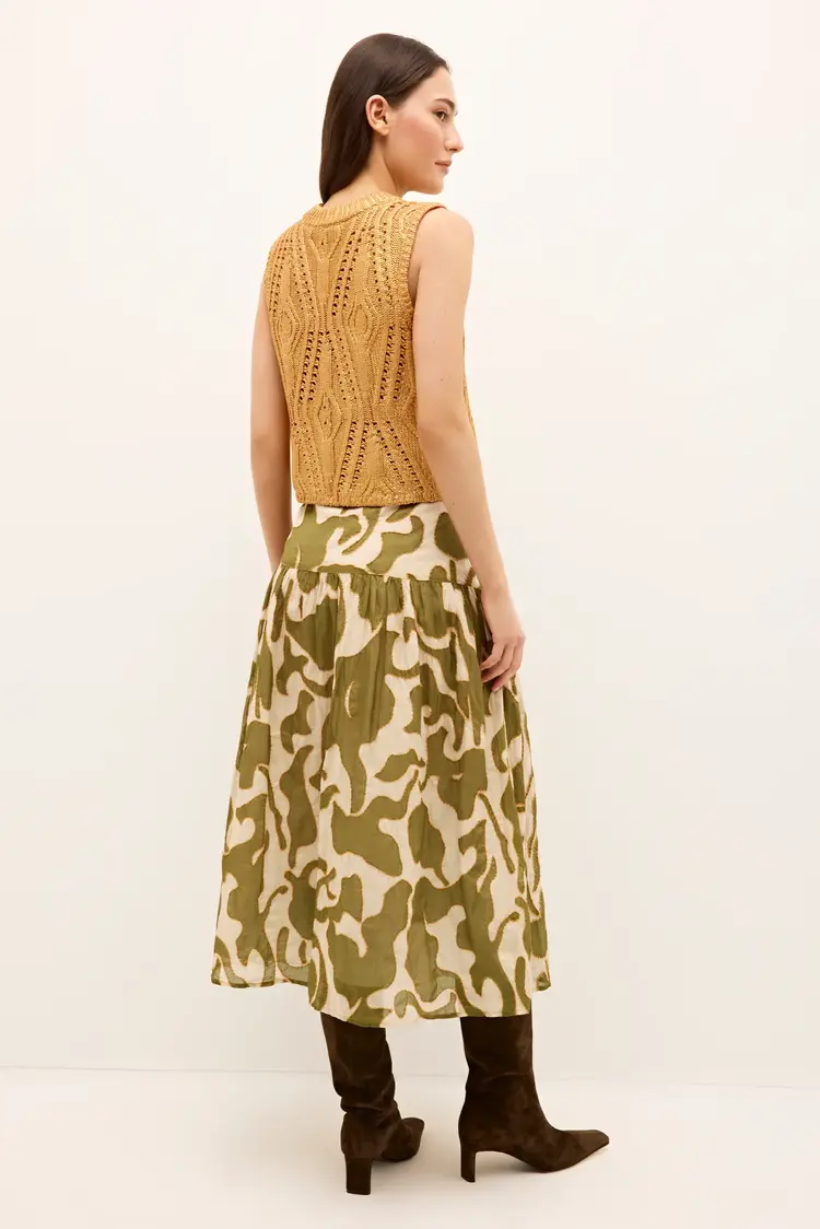 This vegan leather midi skirt’s timelessness that allows it to live beyond current trends. The optional tie belt with trapunto detailing completes the look.