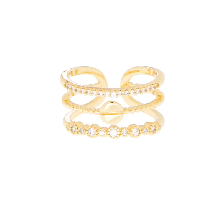 • This adjustable 3 stack pave & nailhead ring is the perfect add-on to any look.